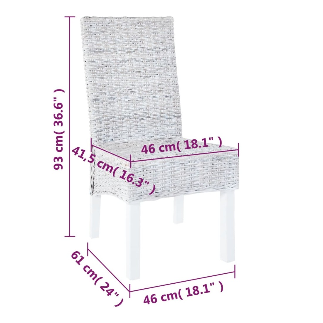 Cette chaise de salle à manger en rotin kubu au design simple et aux couleurs parfaitement assorties fera briller votre salle à manger d'un nouvel éclat. Cadre solide et robuste : Les cadres en bois d'acajou et le tissage authentique rendent les chaises non seulement solides au niveau structurel mais également agréables au niveau esthétique. Confortable et facile à nettoyer : les sièges recouverts de rotin sont très confortables et faciles à nettoyer. Confort supplémentaire : le dossier haut ajoute un confort d’assise supplémentaire.