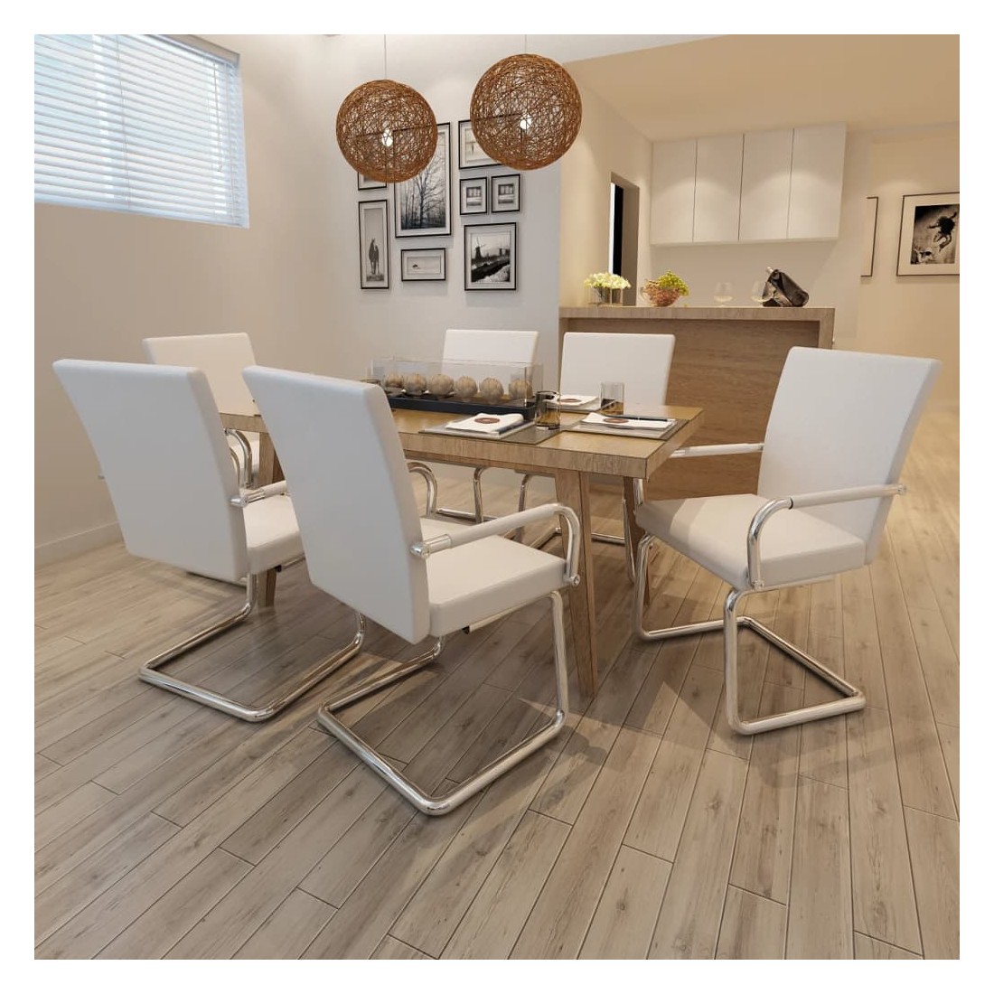 Chaises à manger cantilever lot de 6 blanc similicuir
