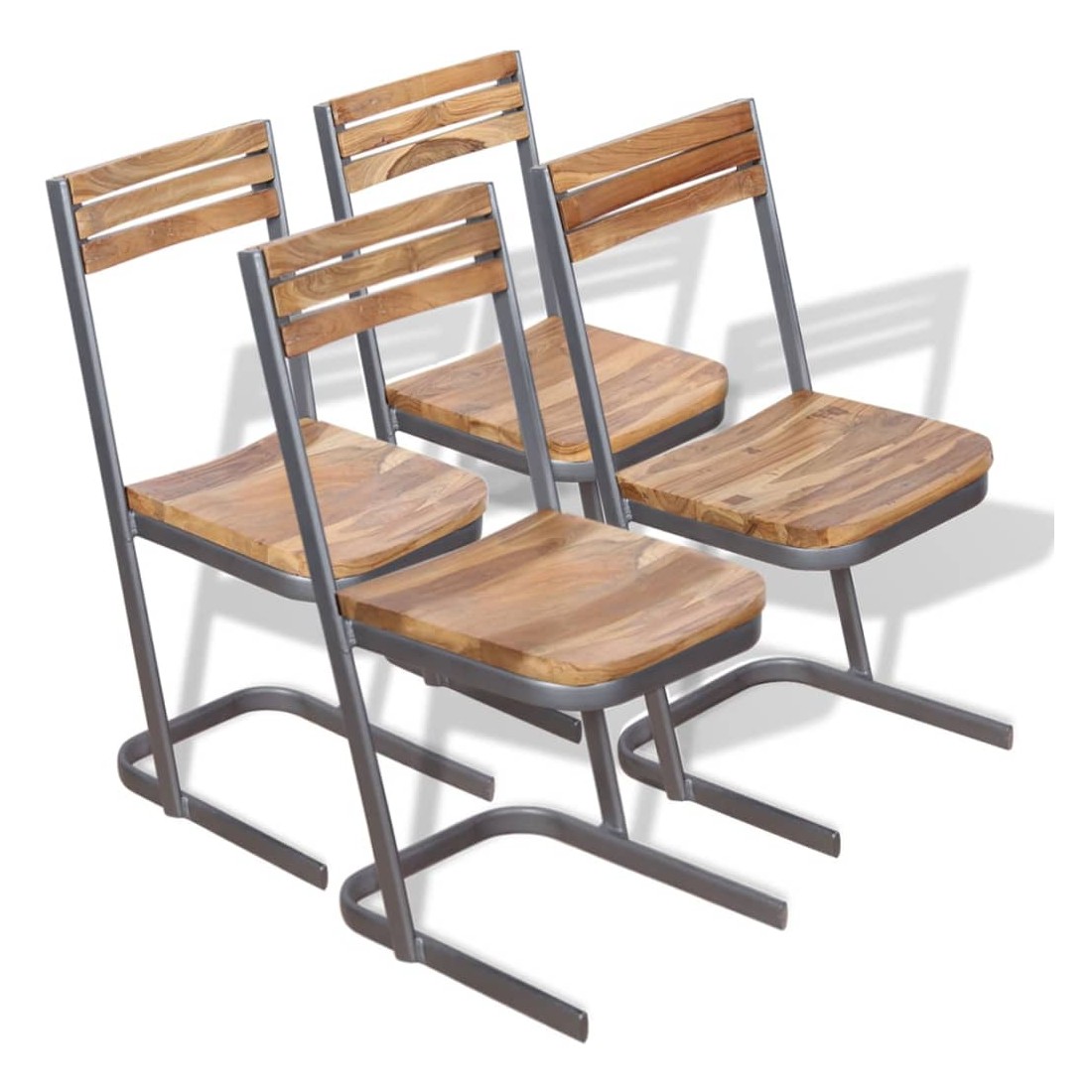 Cet ensemble de chaises de salle à manger, avec son design moderne, sera approprié à toute cuisine ou salle à manger. Fabriquées en teck massif, ces chaises sont robustes et durables. Les pieds sont faits de fer durable qui s'ajoute à leur robustesse et peuvent être nettoyés facilement. L'artisanat et les beaux grains de bois rendent chaque meuble unique et légèrement différent de l'autre. Remarque importante : les couleurs varient d'une pièce à l'autre, rendant chacune de nos chaises de salle à manger unique. La livraison est aléatoire. La livraison comprend 4 chaises.
