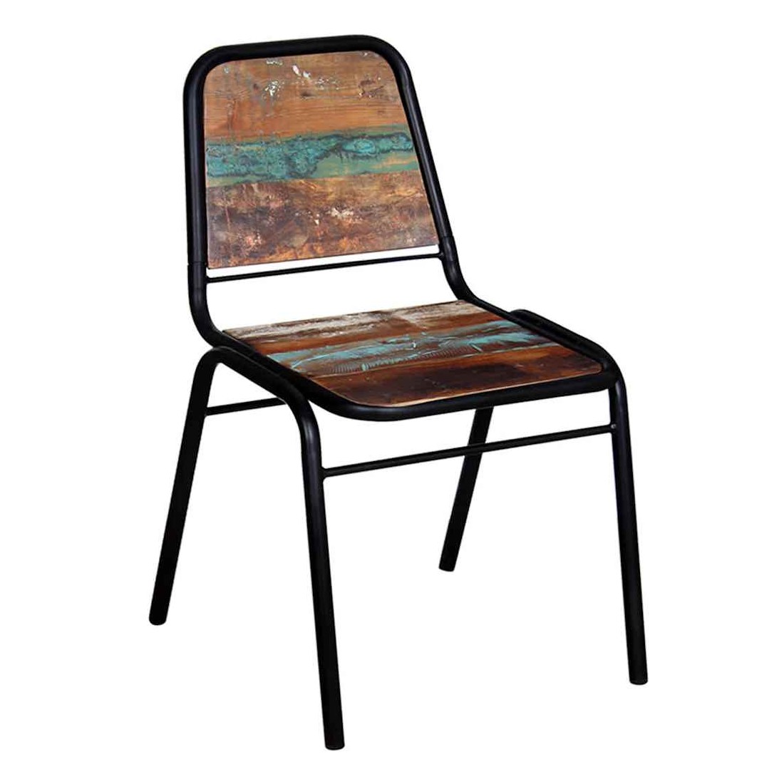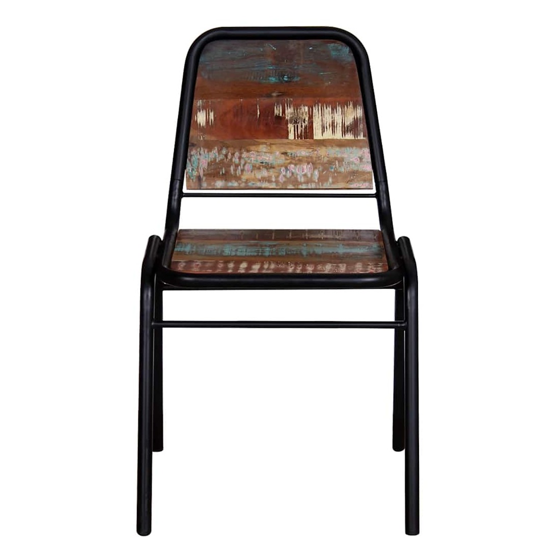 Cet ensemble de chaises de salle à manger en bois de style antique sera un supplément unique à votre cuisine ou salle à manger. Sa construction en acier enduit de poudre le rend stable et robuste. Ces chaises de style vintage sont fabriquées en bois de récupération massif, ce qui signifie que chaque meuble est unique et légèrement différent l'un de l'autre. Les meubles en bois de récupération ont les caractéristiques de différents bois comme le teck, le bois de manguier et l'acacia. Le bois de récupération est solide, stable, durable et beau. Des signes d'usure et une structure de grain visible rendent chaque meuble unique et légèrement différent l'un de l'autre. Cet ensemble de chaises est fait à la main et la qualité du travail d'artisanat contribue à son style rétro spectaculaire. C