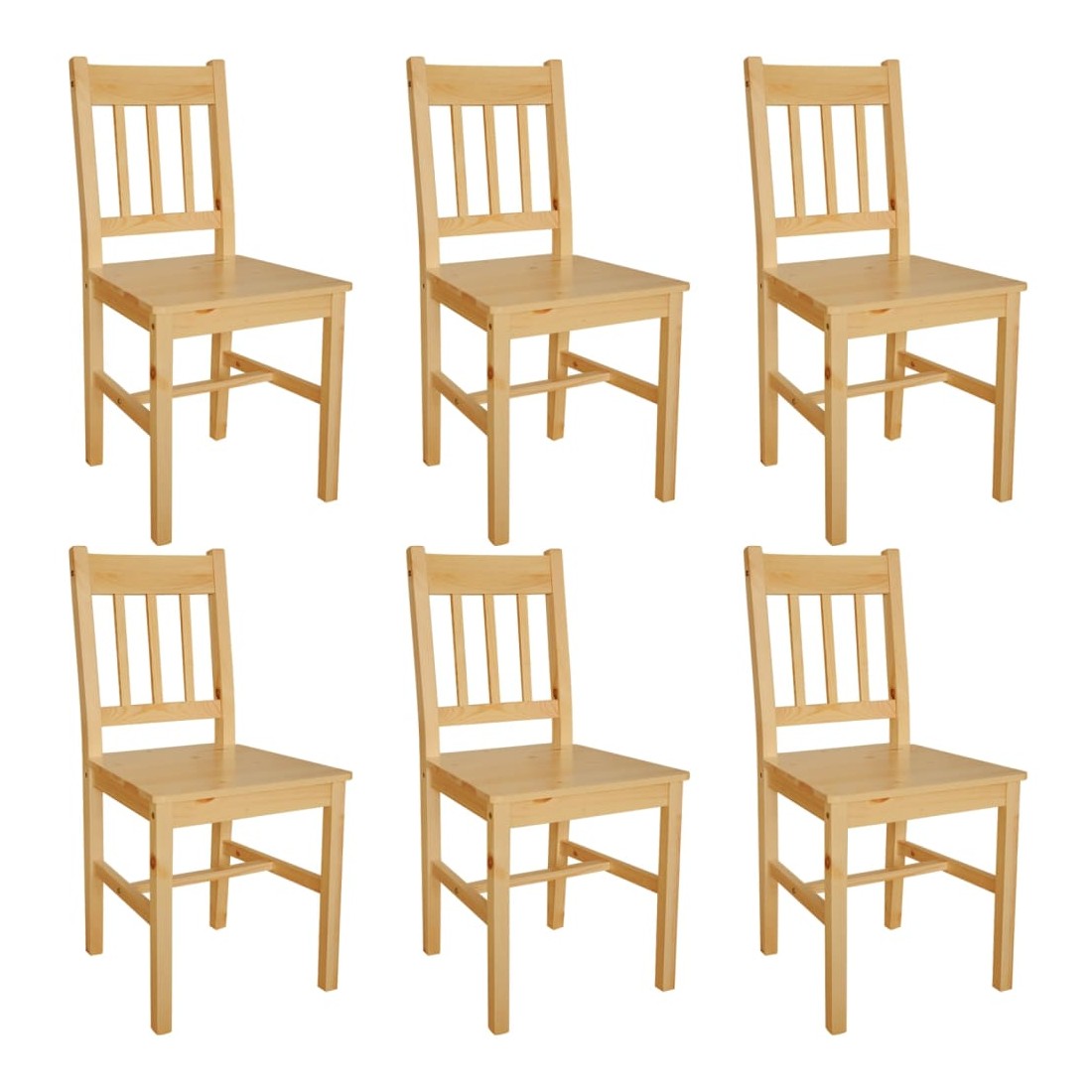 Ce set de chaises à manger, au design simple mais élégant, se compose de 6 chaises et fera un excellent ajout dans votre salle à manger ou votre cuisine.Les chaises sont fabriquées en bois de pin massif, ce qui les rend très stables et durables. Elles sont également faciles à nettoyer grâce à leur finition peinte lisse. Elles sont conçues de façon ergonomique pour un confort accru.La livraison comprend 6 chaises à manger.