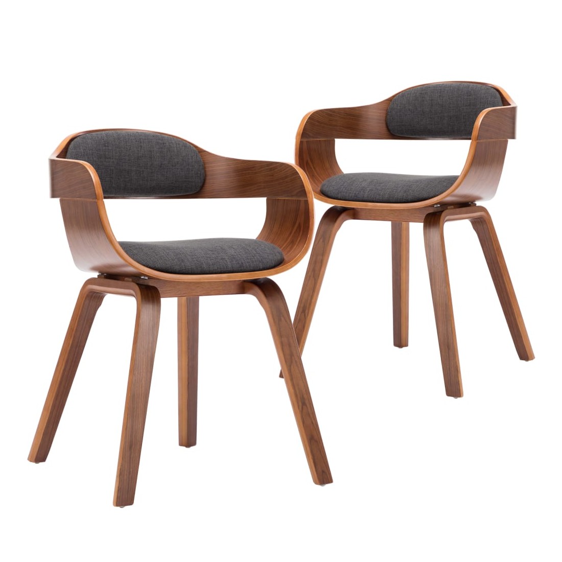 Chaises à manger lot de 2 gris foncé tissu et bois courbé
