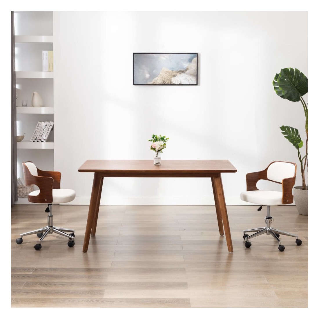 Chaise pivotante à manger Blanc Bois courbé et similicuir