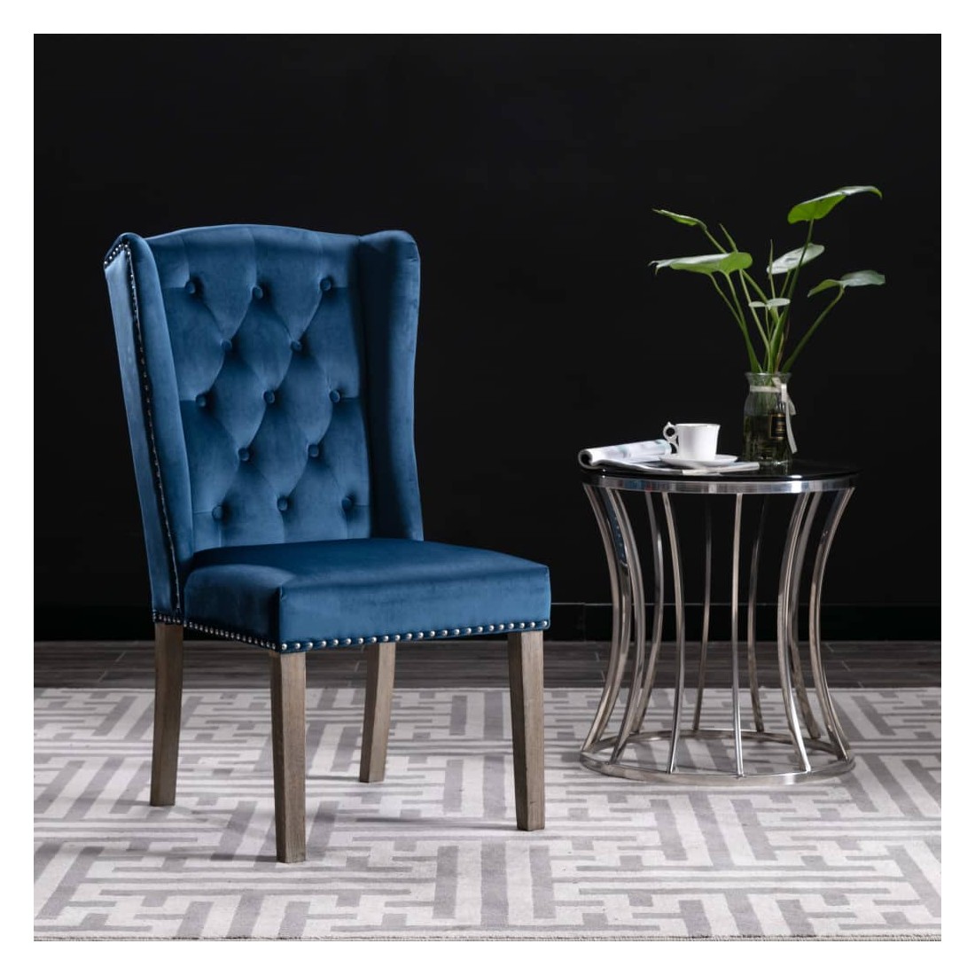 Vous cherchez à ajouter un goût classique à votre salle à manger ? Nos chaises de salle à manger sont parfaites. Ces chaises de salle à manger, rembourrées en tissu de velours doux au toucher, offrent un endroit confortable pour dîner, lire ou simplement vous détendre. Le bouton décoratif sur le dossier et les rivets métalliques le long des bords augmentent la beauté classique de la chaise. Soutenu par des pieds en bois d'hévéa, les sièges de la salle à manger sont stables et robustes.