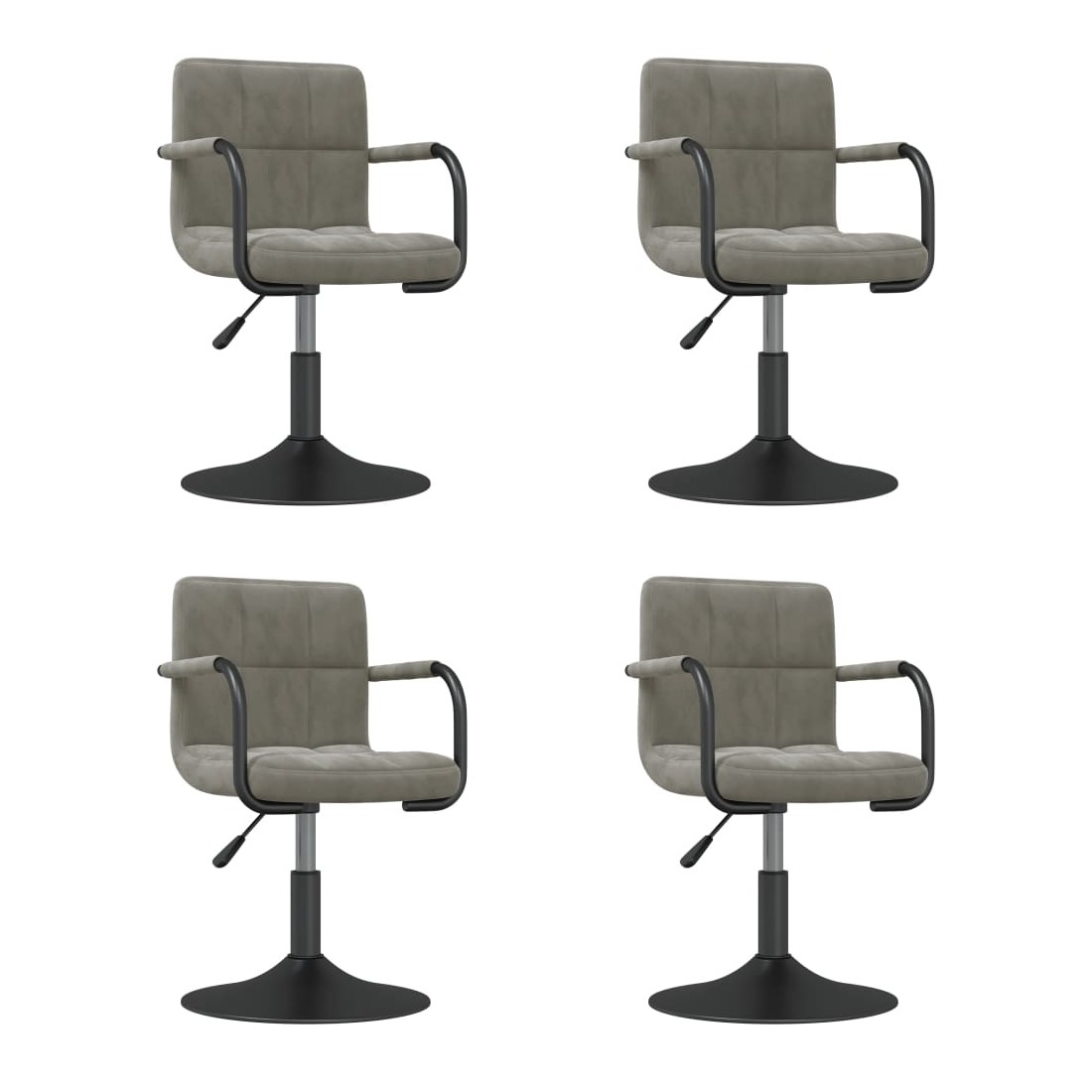 Dégustez quelques gorgées de vin, prenez une bouchée ou détendez-vous simplement en vous asseyant sur ces chaises de salle à manger pivotantes. Tapissées de velours doux au toucher, ces chaises pivotantes vous apporteront un confort d’assise optimal. Le cadre en acier enduit de poudre offre une grande robustesse. Grâce au mécanisme de levage à gaz, ces chaises de salle à manger peuvent être réglées en hauteur, ce qui en fait un complément parfait à tout bar fonctionnel ou salle à manger. Elles peuvent également pivoter à 360 degrés avec une grande flexibilité.