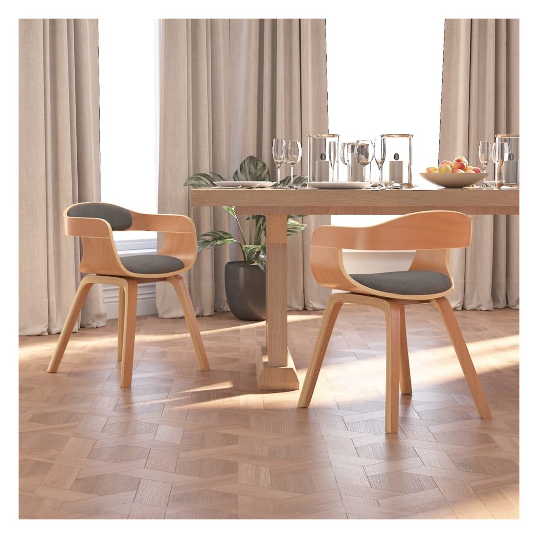 Cet ensemble de chaises de salle à manger élégant au design esthétique et ergonomique constitue un supplément décoratif et confortable à votre salle à manger et à votre cuisine. La chaise de salle à manger est tapissée en tissu, doux pour vous asseoir et durable. Grâce au siège et au dossier rembourrés en mousse, cette chaise de cuisine offre un confort d'assise optimal. Les pieds en bois courbé de haute qualité rendent la chaise très solide et durable et ajoutent à son aspect chic.