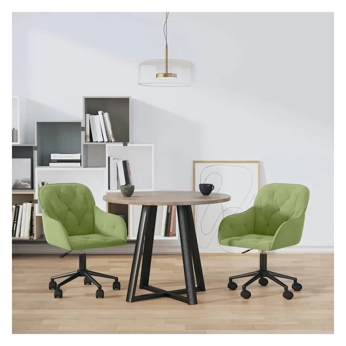 Que vous soyez en train de dîner dans la salle à manger, ou simplement de lire et de vous détendre dans le salon, ces chaises de salle à manger peuvent parfaitement répondre à vos besoins. Velours doux : le velours est un tissu doux et luxueux qui se reconnaît à son tas dense de fibres uniformément coupées qui ont une touche lisse. Le tissu en velours présente un toucher doux distinctif, ce qui le rend confortable/agréable au toucher.Grande flexibilité : utilisez le levier pour régler la hauteur de votre siège à votre convenance. De plus, la conception pivotante à 360 degrés et les roulettes roulantes permettent une plus grande amplitude de mouvement.Cadre stable et solide : les cadres en métal et en contreplaqué de la chaise assurent robustesse et stabilité. Remarque :Chaque produit est livré avec un manuel de montage dans la boîte pour un montage facile.