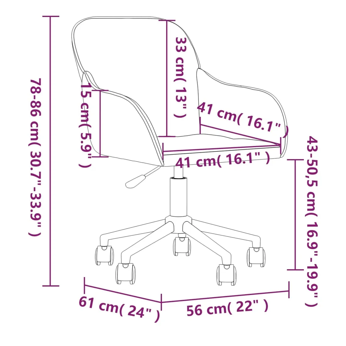 - Dimensions totales : 56 x 61 x (78-86) cm (l x P x H)