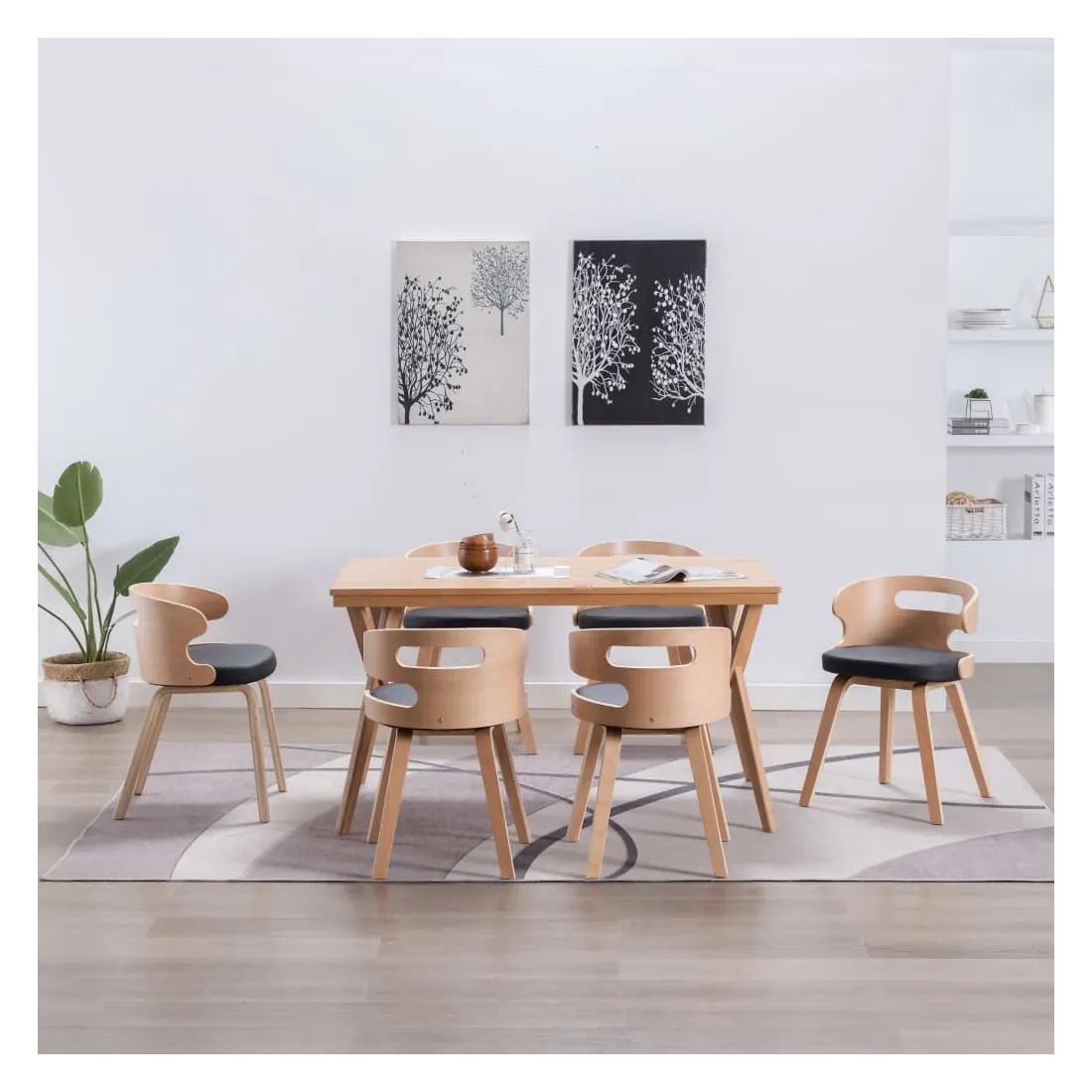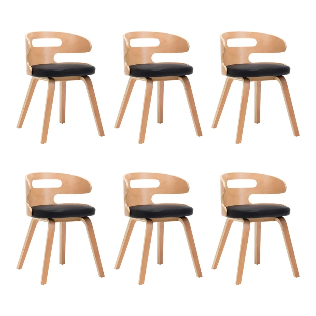 Chaises à manger lot de 6 noir bois courbé et similicuir