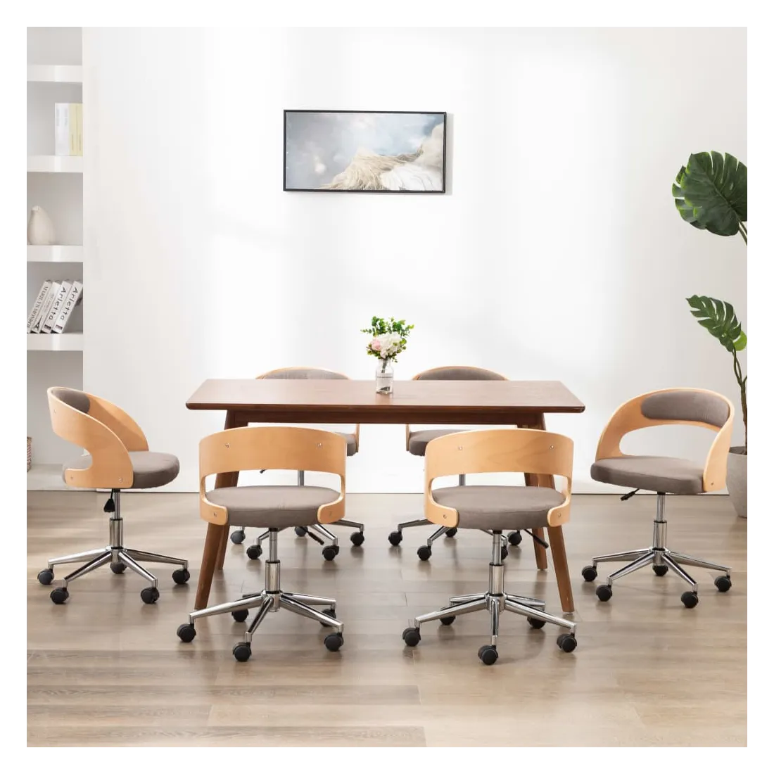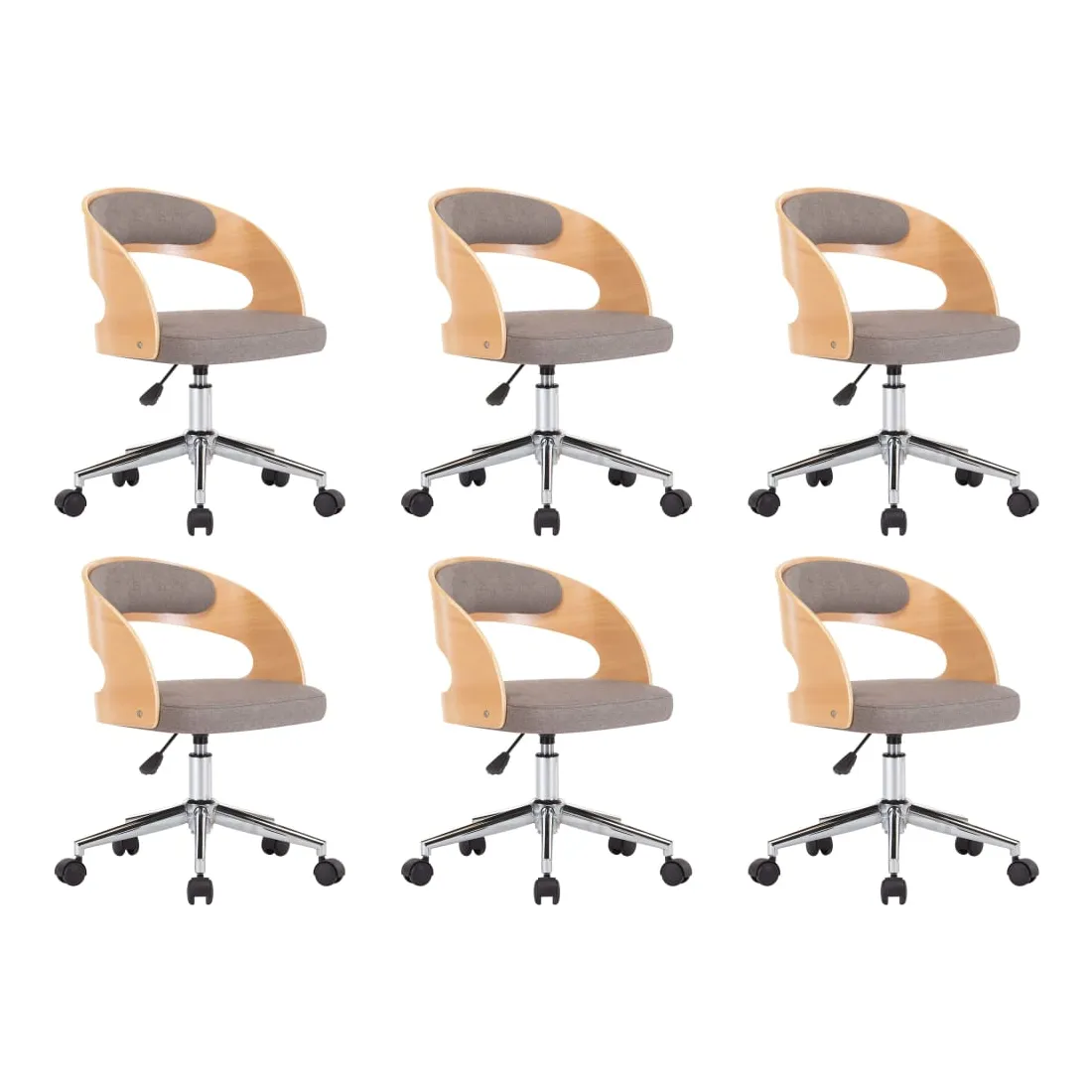 Chaises pivotantes à manger lot de 6 taupe bois courbé et tissu