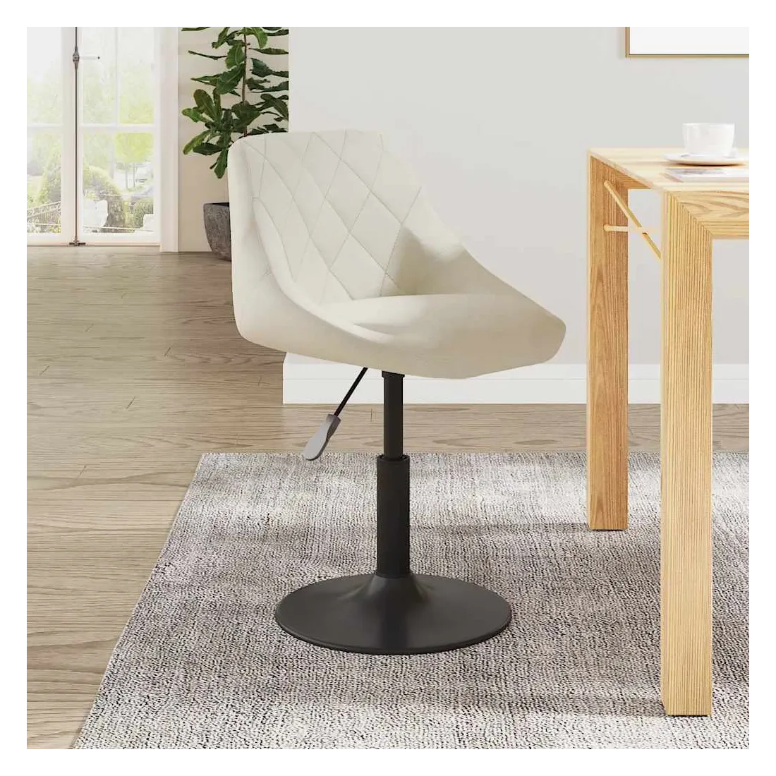 Cette chaise de salle à manger pivotante tendance, au design élégant, se veut un supplément pratique et moderne à votre maison. Cette chaise est recouverte de velours doux au toucher, vous apportant un confort d'assise optimal. Le cadre en acier enduit de poudre noire offre une grande robustesse. Grâce au mécanisme de levage à gaz, ce siège peut également être ajusté en hauteur et constitue un complément parfait à tout bar ou salle à manger fonctionnel. Il peut également pivoter à 360 degrés avec une grande flexibilité.