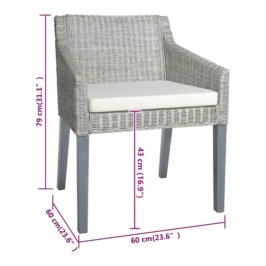 - Hauteur d’assise (sans coussin) : 43 cm