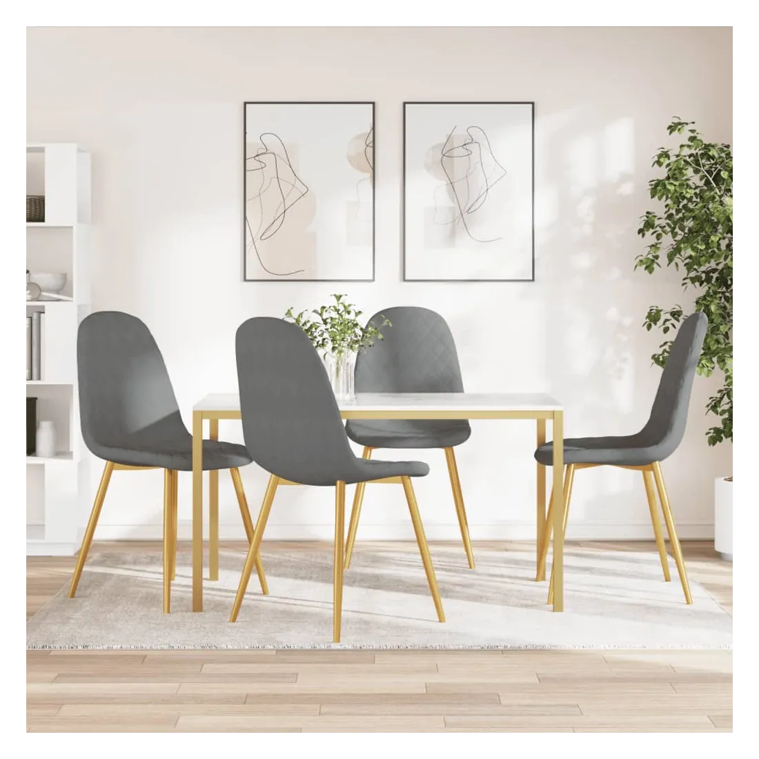 À la fois minimalistes et élégantes, ces chaises de salle à manger sont conçues pour se démarquer dans votre espace de vie. Les chaises de cuisine offrent à votre famille un endroit confortable pour dîner dans la salle à manger ou lire et vous reposer dans le salon. Grâce au siège et au dossier rembourrés en mousse épaisse, les chaises latérales vous apporteront sûrement un confort d'assise optimal. De plus, les pieds chromés dorés ajoutent à leur stabilité et à leur robustesse.