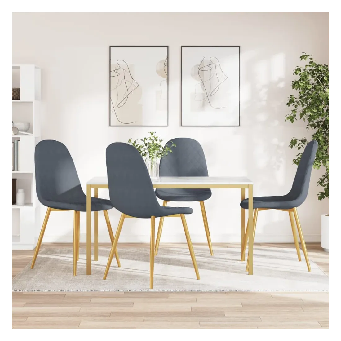 À la fois minimalistes et élégantes, ces chaises de salle à manger sont conçues pour se démarquer dans votre espace de vie. Les chaises de cuisine offrent à votre famille un endroit confortable pour dîner dans la salle à manger ou lire et vous reposer dans le salon. Grâce au siège et au dossier rembourrés en mousse épaisse, les chaises latérales vous apporteront sûrement un confort d'assise optimal. De plus, les pieds chromés dorés ajoutent à leur stabilité et à leur robustesse.