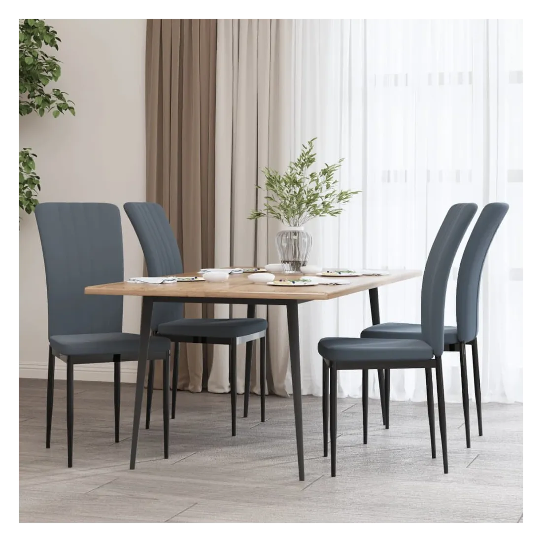 Ces chaises de salle à manger, au design simple mais élégant, sont conçues pour attirer l'attention dans votre espace de vie. Velours doux : ces chaises sont fabriquées en velours. Le velours est un tissu doux et luxueux qui se reconnaît à son tas dense de fibres uniformément coupées qui ont une touche lisse. Le tissu en velours présente un toucher doux distinctif, ce qui le rend confortable/agréable au toucher.Cadre robuste et stable : les cadres en fer de ces chaises de dîner assurent la robustesse et la stabilité.Siège de salle à manger confortable : le dossier de la chaise de cuisine est bien conçu et rembourré de mousse, offrant un confort d'assise optimal. Remarque :Chaque produit est livré avec un manuel de montage dans la boîte pour un montage facile.