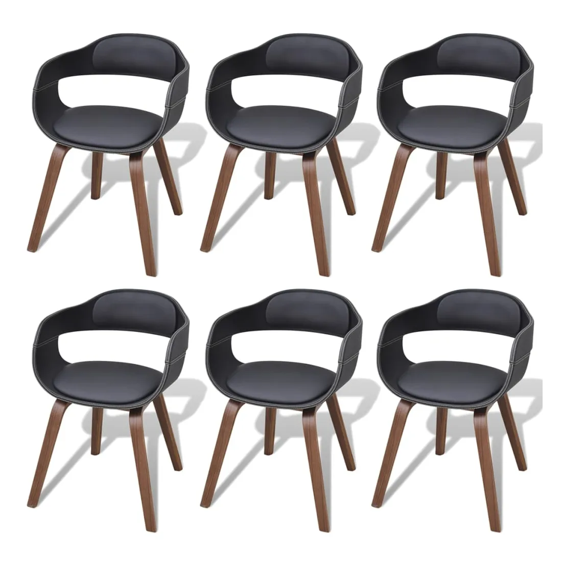 Chaises à manger lot de 6 noir bois courbé et similicuir