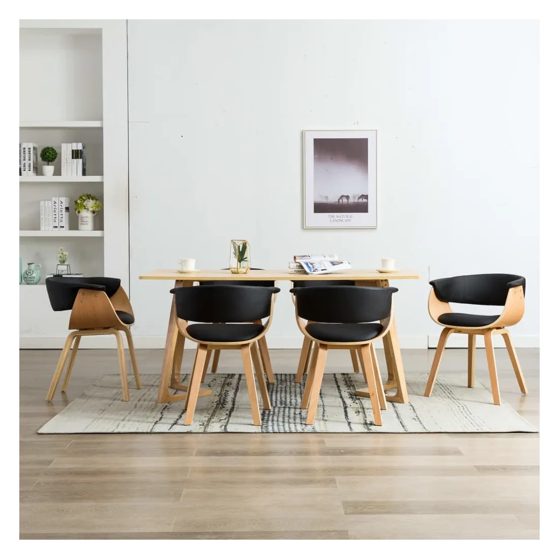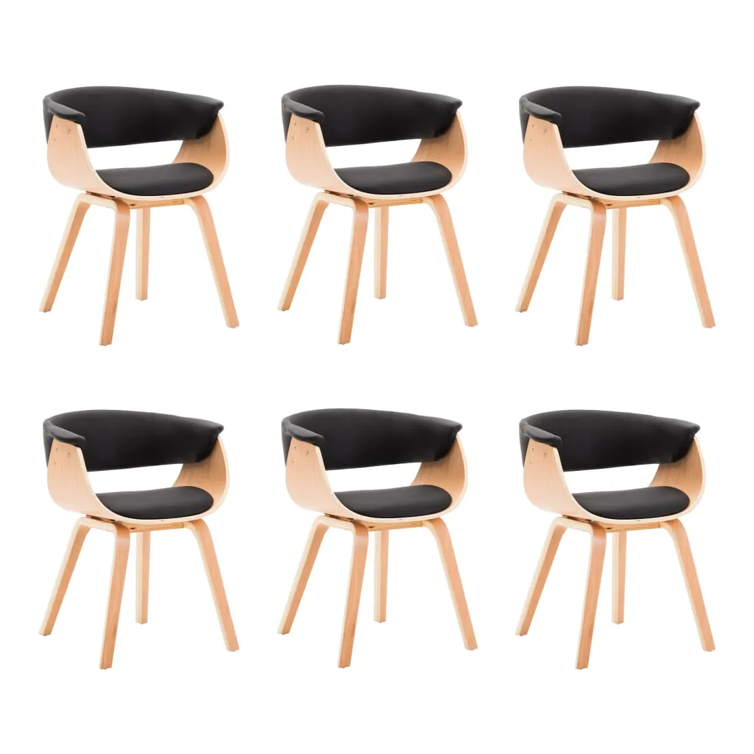 Chaises à manger lot de 6 noir bois courbé et similicuir