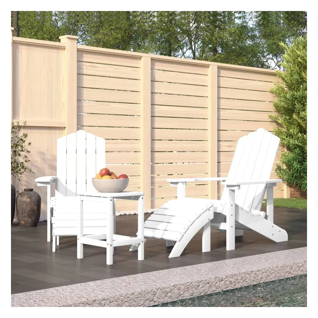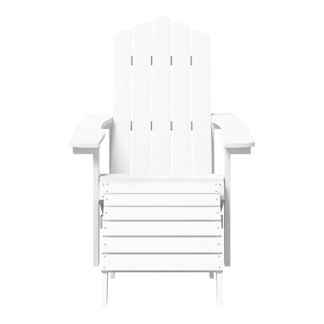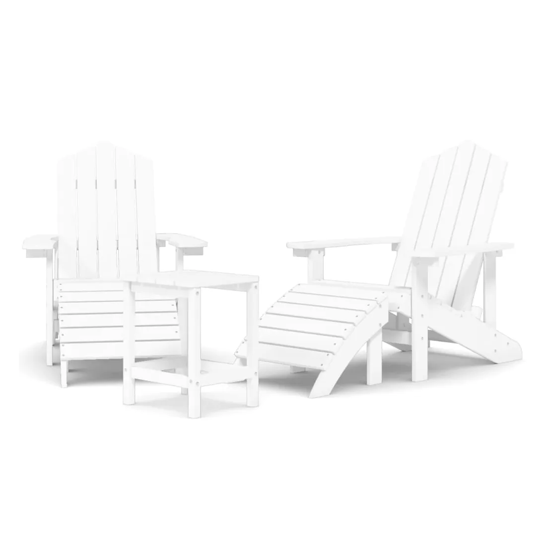 Cette chaise Adirondack de jardin avec repose-pied et table sont un supplément pratique et élégant à votre jardin, votre patio ou votre terrasse. Matériau de première qualité : les chaises de patio avec repose-pied et table sont fabriqués en PEHD (polyéthylène haute densité) résistant aux intempéries et aux rayons UV. Ce matériau améliore parfaitement les défauts du bois massif, qui se décompose et se fissure facilement, surtout les jours de pluie.Surface nécessitant peu d'entretien : l'ensemble de meubles d'extérieur ne nécessitent aucune peinture, teinture, imperméabilisation ou entretien similaire. Il n'a besoin que d'un lavage avec du savon, de l'eau et une brosse à poils doux. Avec un minimum d'entretien, cet ensemble durable de meubles vous offrira des années d'utilisation.Les repose-pieds sont détachables et peuvent fournir un soutien supplémentaire pour vos pieds.Table pratique : la table Adirondack vous permet de placer votre téléphone, vos lunettes de soleil, votre boisson et d'autres petits objets. Remarque :Afin de prolonger la durée de vie de votre mobilier d'extérieur, nous vous recommandons de le protéger avec une housse imperméable.