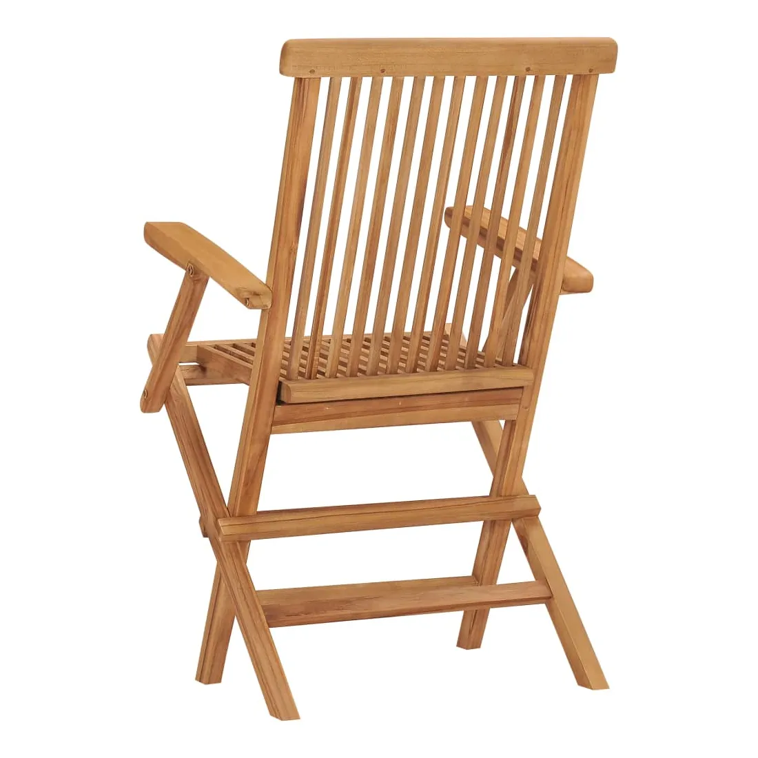 Cet ensemble de chaises de jardin, au design simple mais élégant, vous offre une expérience d'assise confortable. Construite à partir de bois dur de teck extrêmement durable, cette pièce de meuble en teck a été chevronnée, séchée au four puis poncée finement lui pour donner un aspect très lisse. Le bois de teck est connu pour sa solidité et sa résistance aux intempéries exceptionnelles, ce qui le rend bien plus adapté aux meubles de jardin que tout autre type de bois. Le bois de teck est le choix parfait si vous souhaitez acheter un meuble de jardin durable. De plus, les chaises en bois peuvent être facilement repliées lorsqu'elles ne sont pas utilisées. Remarque : afin de prolonger la durée de vie de vos meubles d'extérieur, nous vous recommandons de les nettoyer régulièrement et de ne pas les laisser à l'extérieur sans protection inutilement.Nettoyage : utiliser une solution savonneuse douceStockage : si possible, stockez dans un endroit frais et sec à l'intérieur. Si le produit est stocké à l'extérieur, protégez-le avec une housse imperméable. Essuyez et séchez l'excès d'eau ou de neige des surfaces planes après la pluie ou une chute de neige. Permettez une circulation d'air suffisante afin d'éviter les dommages liés à l'humidité.