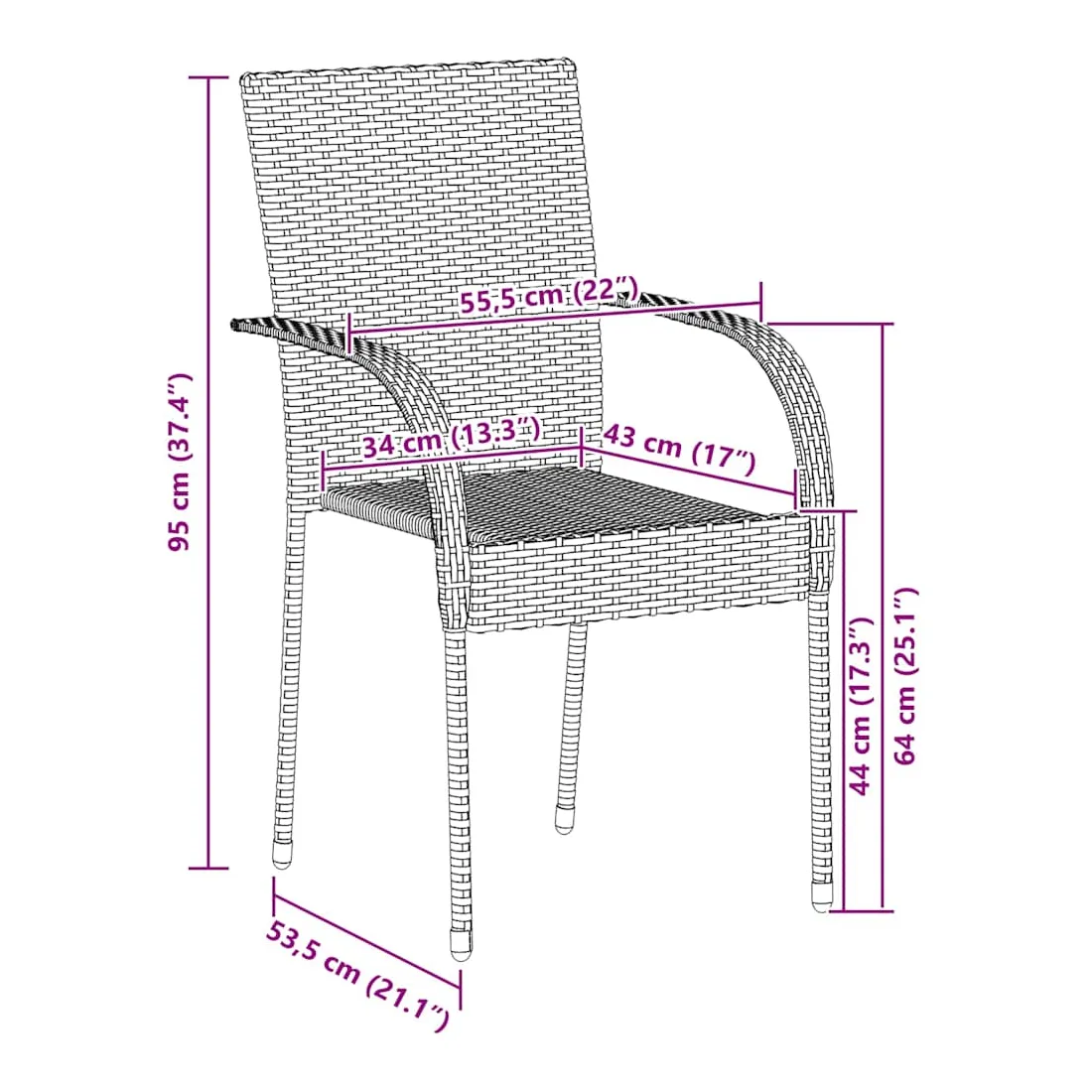 Ajoutez une touche de style contemporain à votre jardin, patio ou terrasse avec nos chaises de salle à manger en résine tressée ! Ces chaises de jardin empilables sont faites en résine tressée résistante à l'eau, ce qui les rend résistantes à l'usure, faciles à nettoyer et adaptées à une utilisation quotidienne à l'extérieur. Les chaises d'extérieur ont un cadre en acier enduit de poudre qui les rend robustes et stables. Les chaises d'extérieur sont légères et peuvent être empilées pour économiser de l'espace lorsqu'elles ne sont pas utilisées.