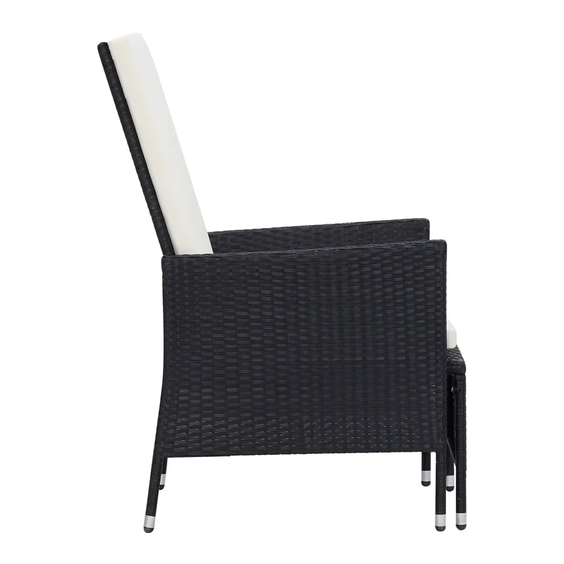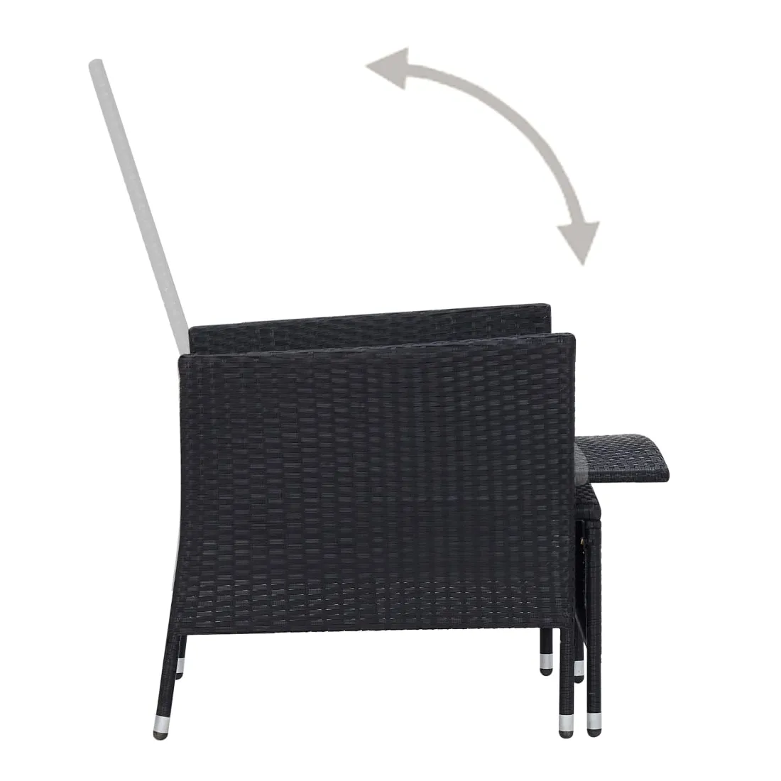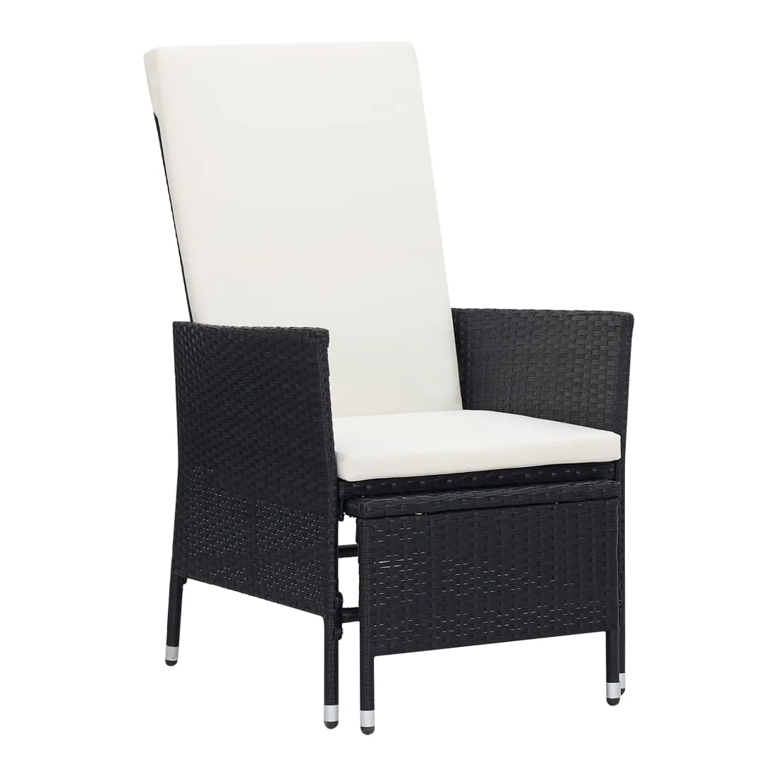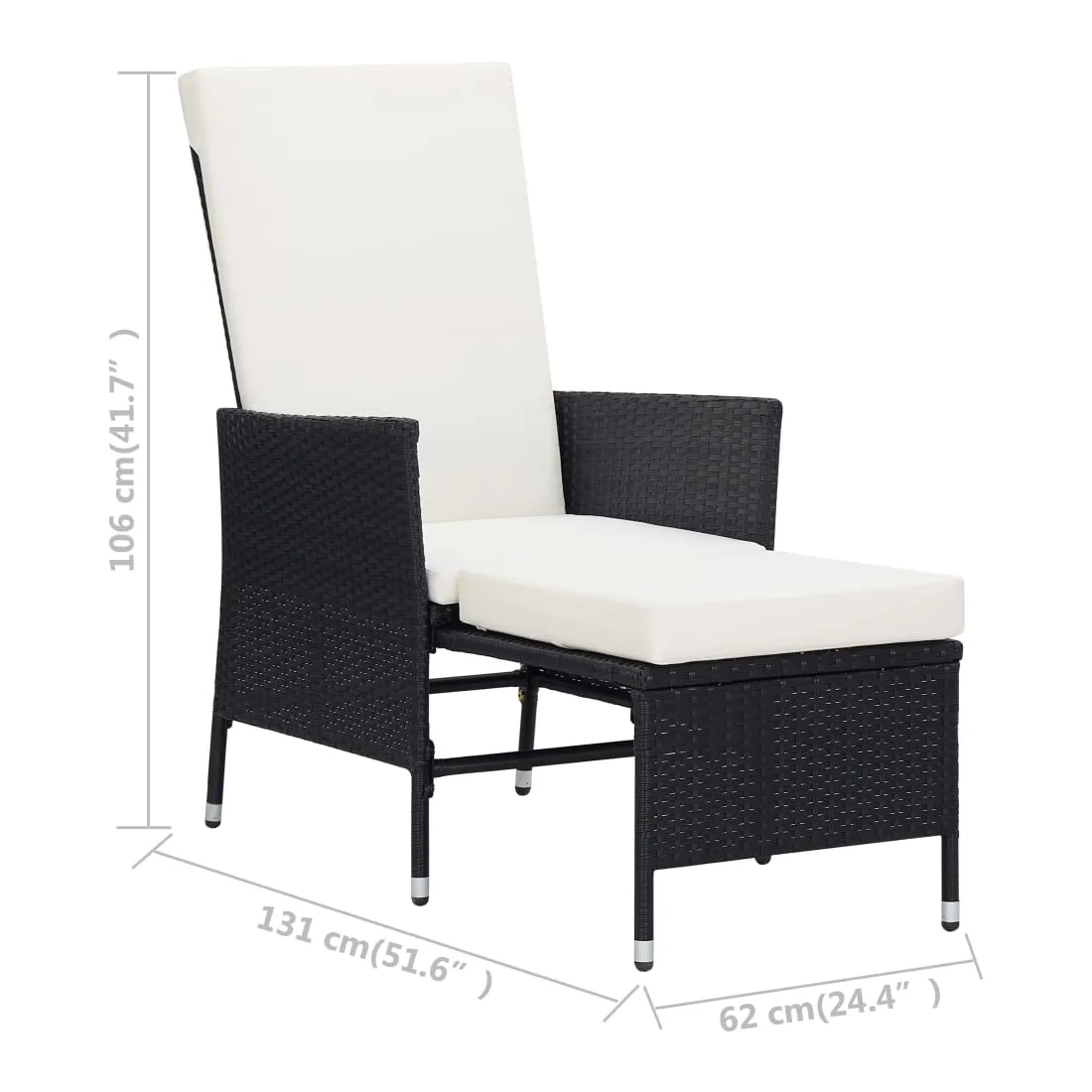 Chaise inclinable de jardin avec coussins Résine tressée Noir