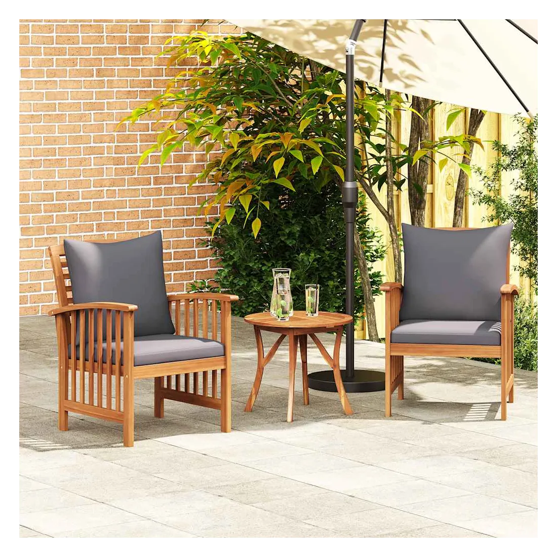 Cet ensemble de 2 chaises de jardin en bois est spécialement conçu pour attirer l'attention sur votre jardin, votre patio et votre terrasse ! La chaise d’extérieur est en bois d’acacia massif avec une finition à l’huile, ce qui la rend stable et durable. Le savoir-faire artisanal et les belles veines du bois rendent chaque meuble bien défini et légèrement différent l'un de l'autre. Le coussin de siège et l'oreiller de dossier ajoutent un confort supplémentaire à la chaise. Remarque importante : les couleurs et les grains varient d'une pièce à l'autre, rendant chaque pièce unique ; la livraison est aléatoire.