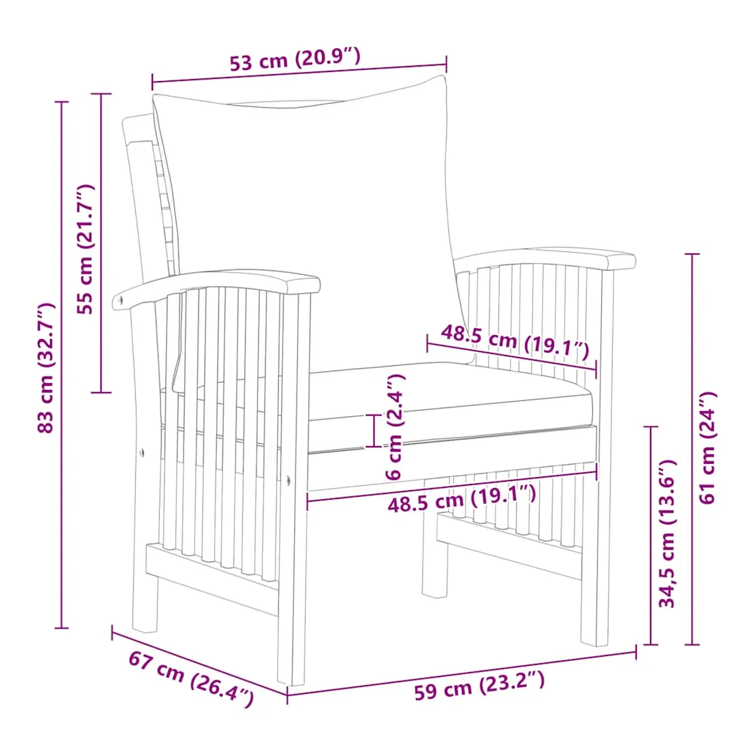 • Épaisseur du coussin de siège : 6 cm