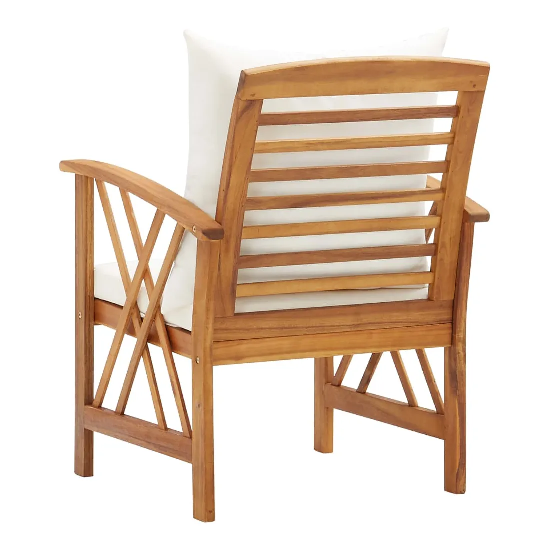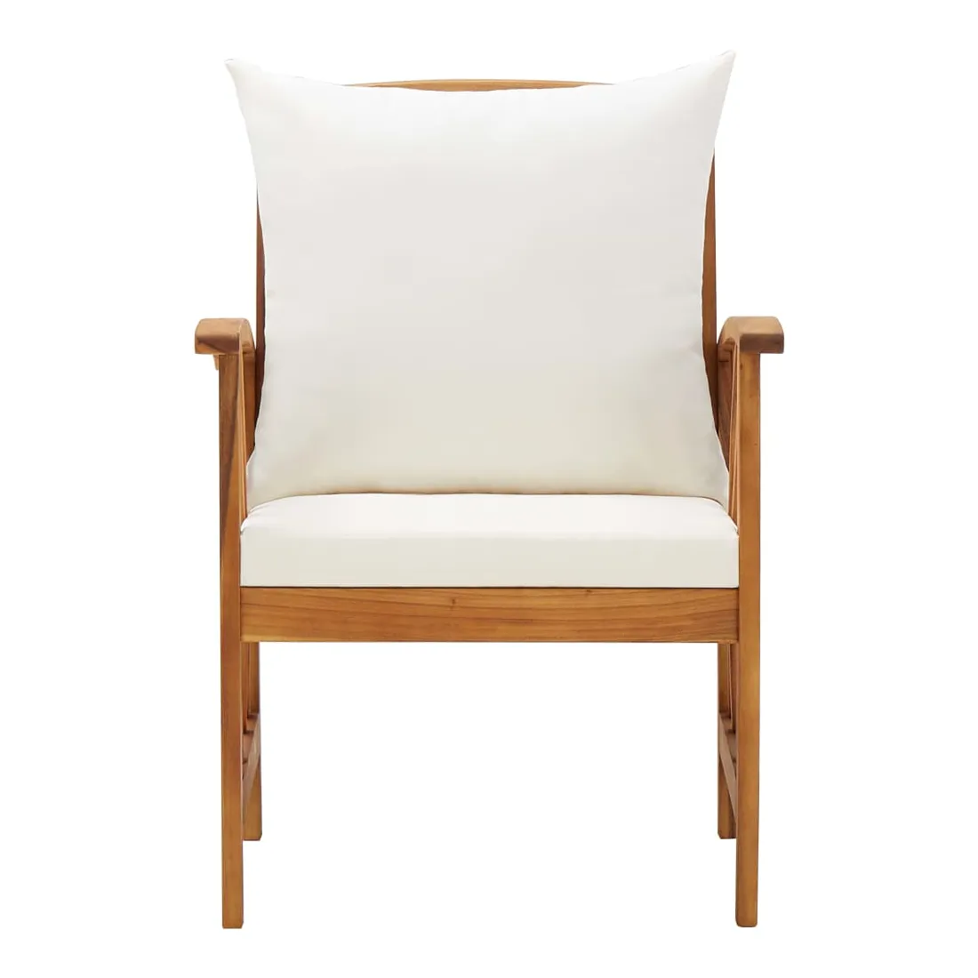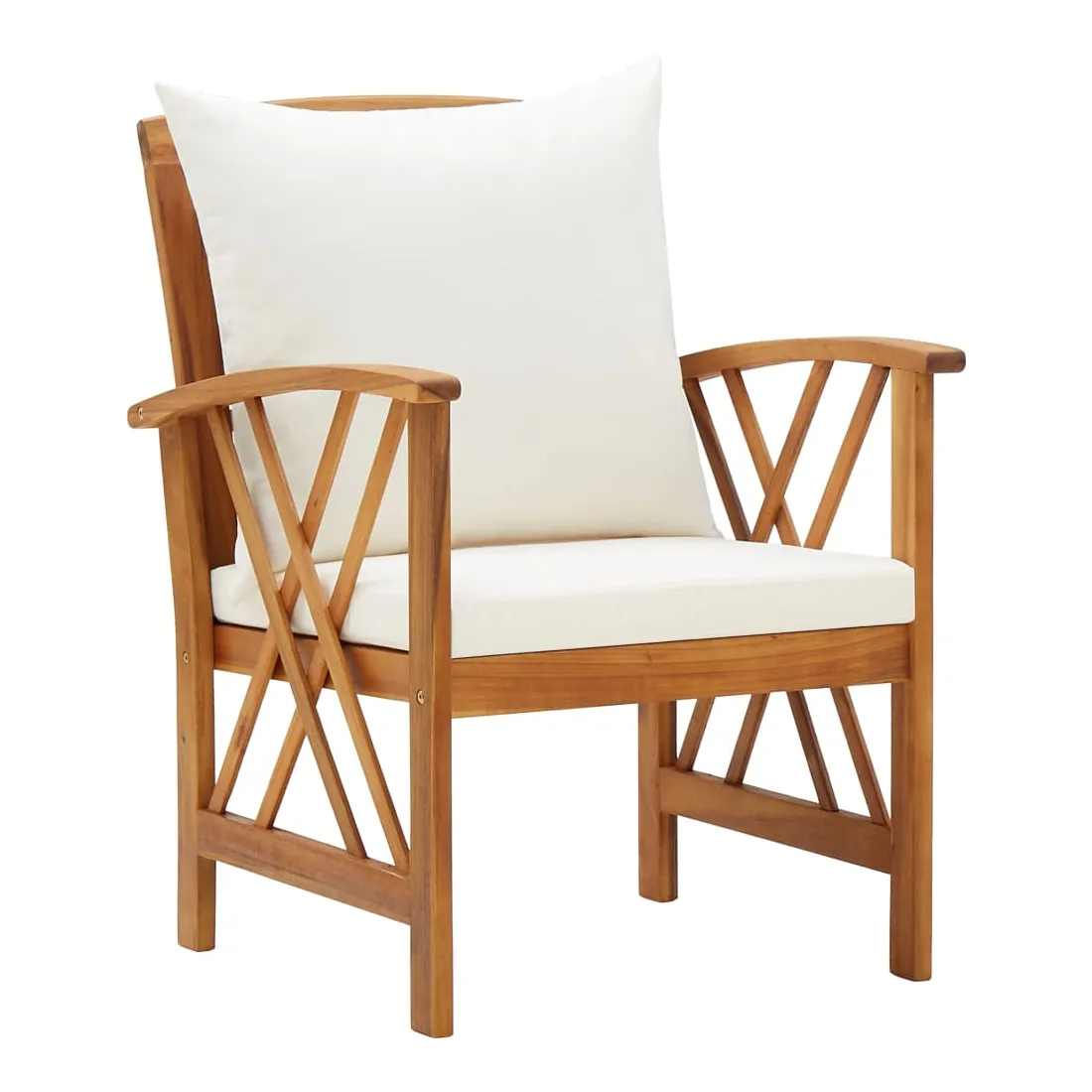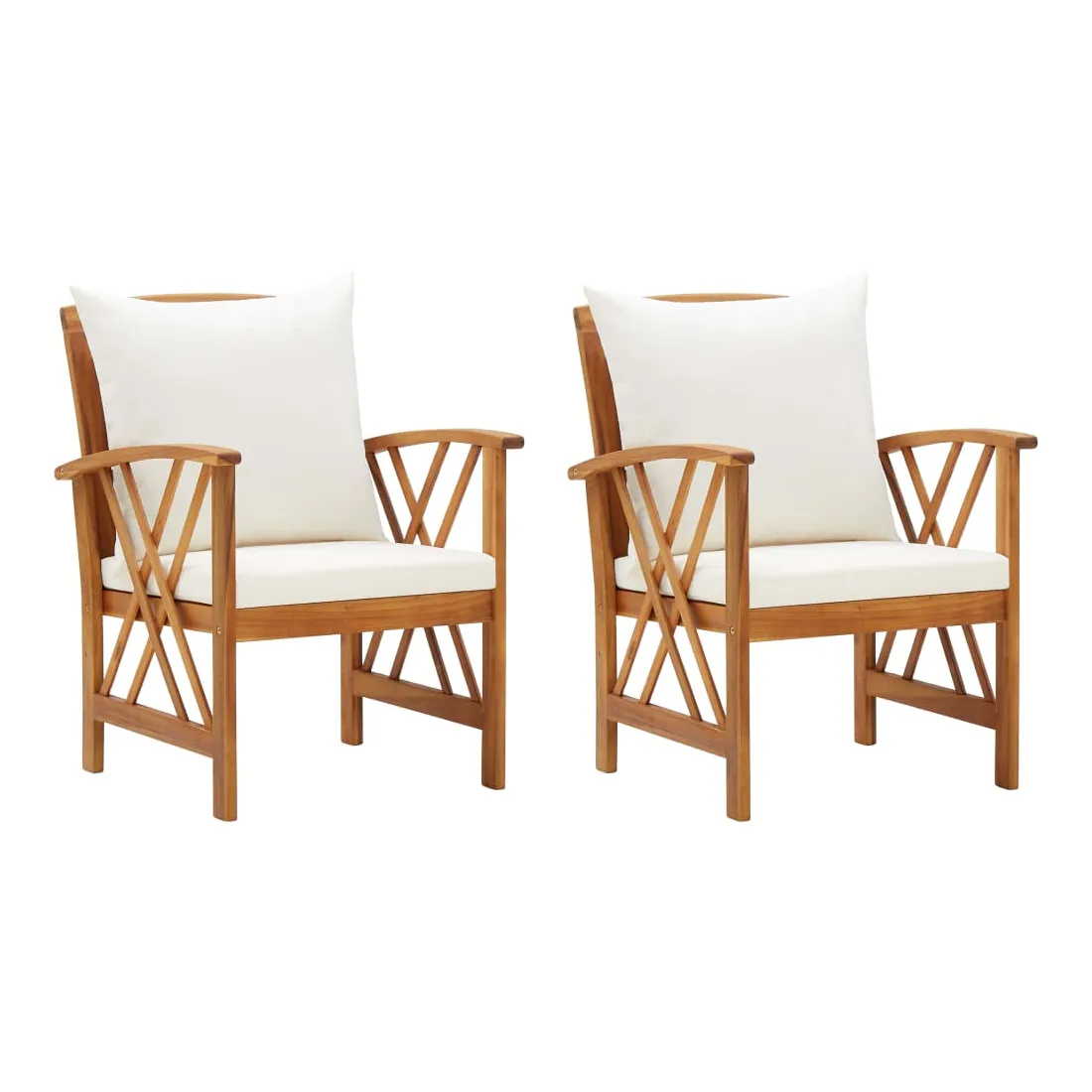 Cet ensemble de 2 chaises de jardin en bois est spécialement conçu pour attirer l'attention dans votre jardin, patio et terrasse ! Matériau durable : la chaise d’extérieur est en bois d’acacia massif avec une finition à l’huile, ce qui la rend stable et durable. Le savoir-faire artisanal et les belles veines du bois rendent chaque meuble bien défini et légèrement différent l'un de l'autre. Cadre robuste : le cadre en bois assure la robustesse et la stabilité. Expérience d’assise confortable : le coussin de siège et l'oreiller de dossier ajoutent un confort supplémentaire à la chaise. Bon à savoir :Chaque article est unique, avec des variations de couleurs et de grains. La livraison est aléatoire, ce qui garantit l'exclusivité et l'individualité de votre produit.