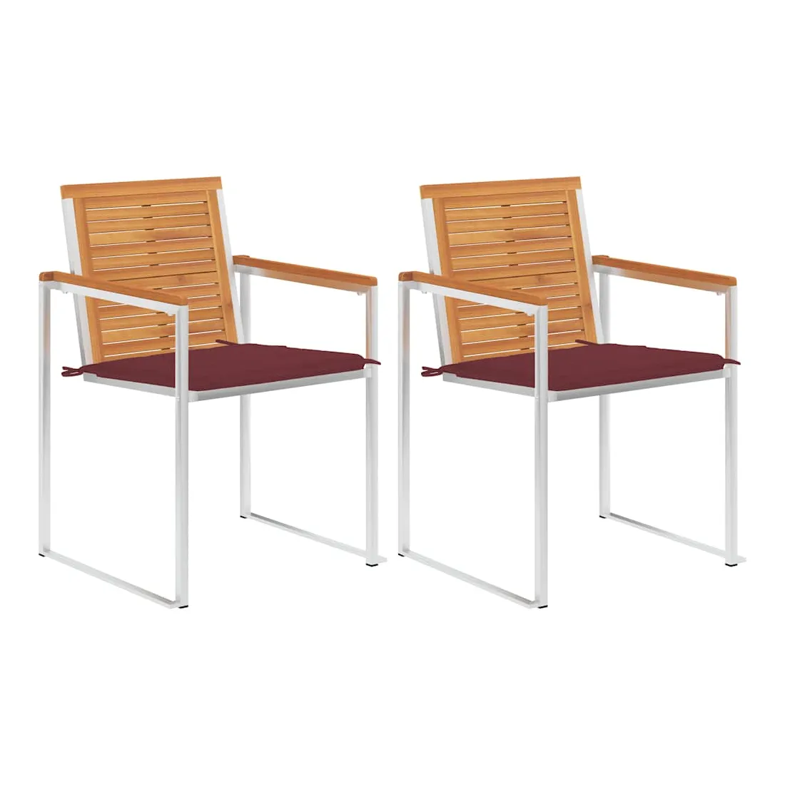 Ces chaises de jardin en bois sont un excellent choix pour les repas en plein air ou simplement pour vous détendre dans votre jardin ou sur votre terrasse. Ces chaises sont fabriquées en bois d'acacia massif à finition à l'huile et en acier inoxydable 304 de haute qualité, ce qui les rend résistantes à la rouille. Elles sont également robustes et faciles à nettoyer. De plus, le coussin ajoute du confort supplémentaire lors de votre temps de détente. Chaque coussin a deux jeux de cordes pour le fixer fermement sur la chaise d'extérieur.