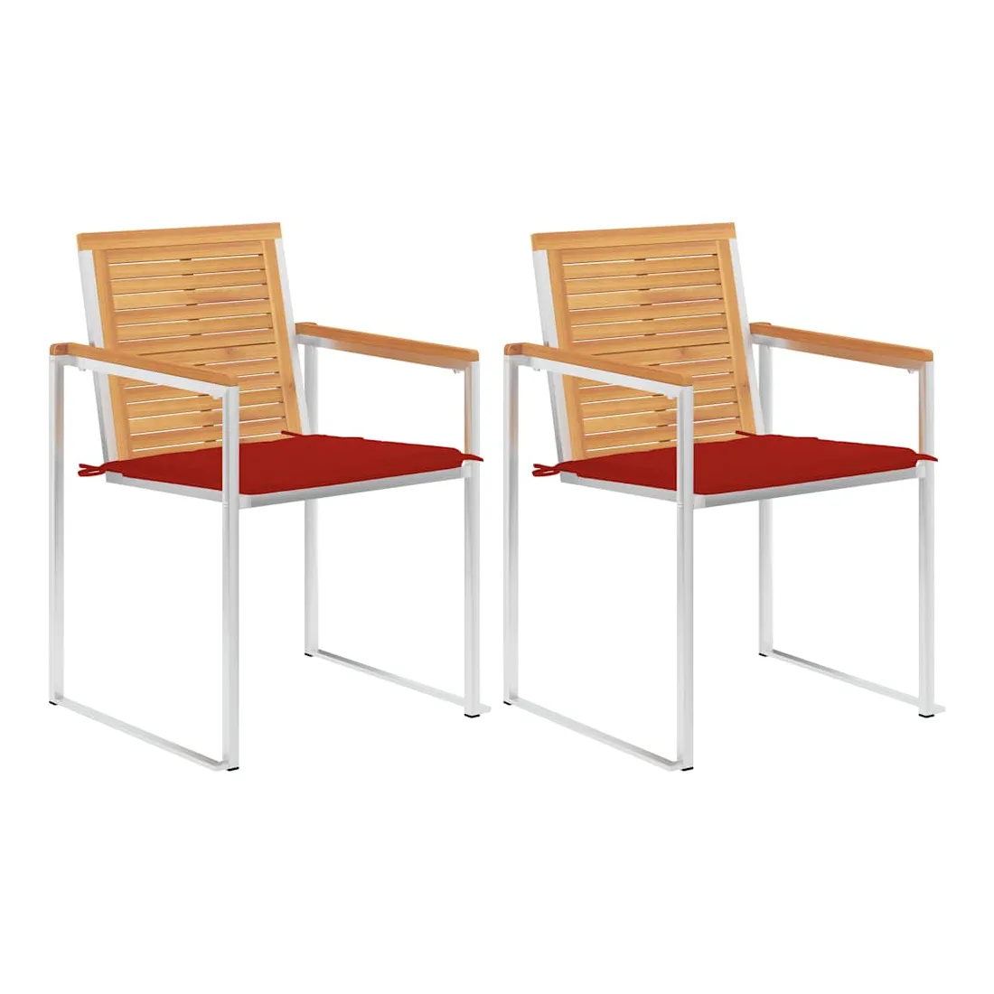 Ces chaises de jardin en bois sont un excellent choix pour les repas en plein air ou simplement pour vous détendre dans votre jardin ou sur votre terrasse. Construit à partir de bois dur de teck extrêmement durable, ce meuble en teck a été chevronné, séché au four puis poncé finement pour lui donner un aspect très lisse. Le bois de teck est connu pour sa résistance exceptionnelle et sa résistance aux intempéries, ce qui le rend bien plus adapté aux meubles de jardin que tout autre type de bois. Le bois de teck est le choix parfait si vous souhaitez acheter un meuble de jardin durable. Les chaises sont également fabriquées en acier inoxydable 304 de haute qualité, ce qui les rend résistantes à la rouille et faciles à nettoyer. De plus, le coussin ajoute du confort supplémentaire à votre temps de détente. Chaque coussin a deux jeux de cordes pour le fixer fermement sur la chaise d'extérieur.