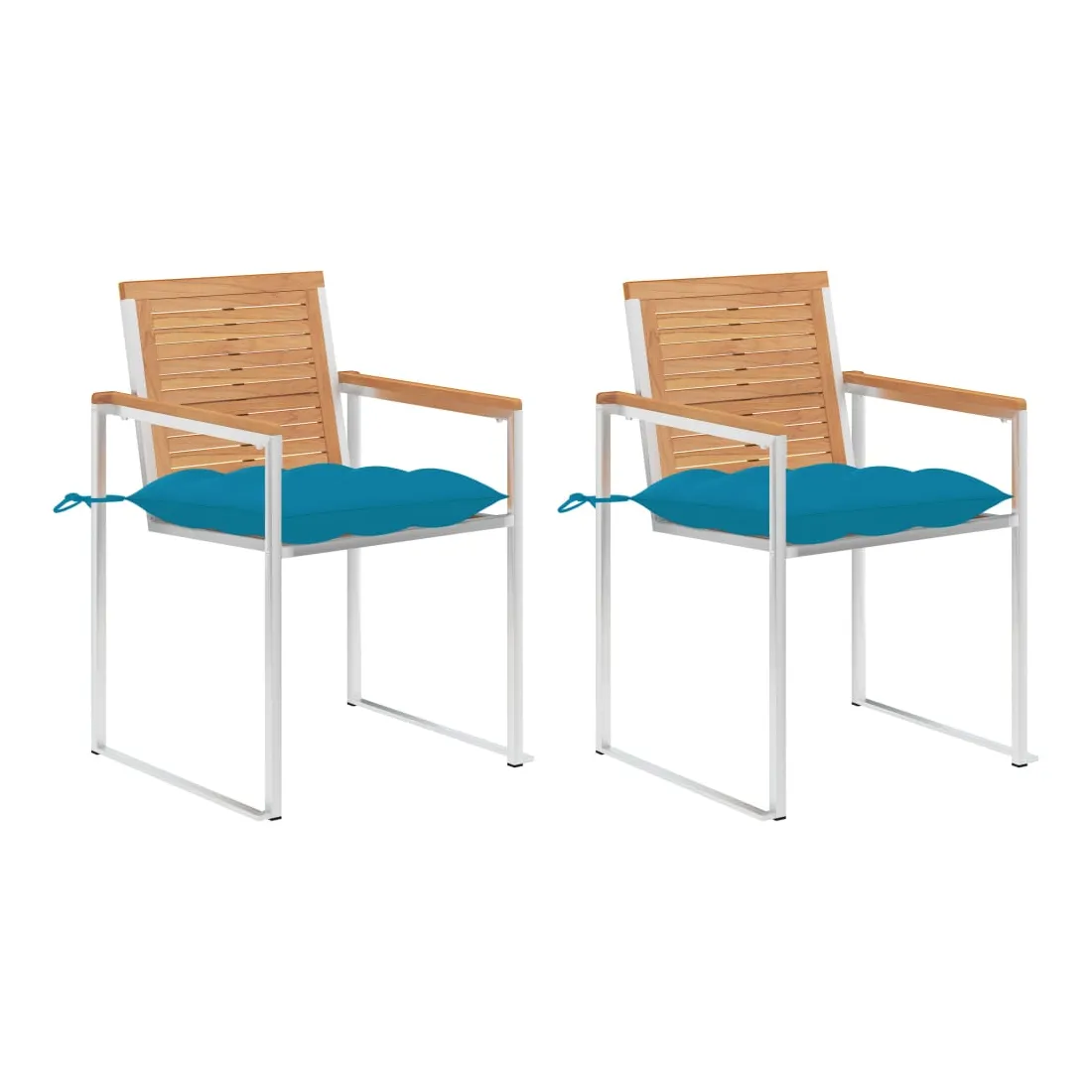 Chaises de jardin avec coussins lot de 2 Teck solide et acier