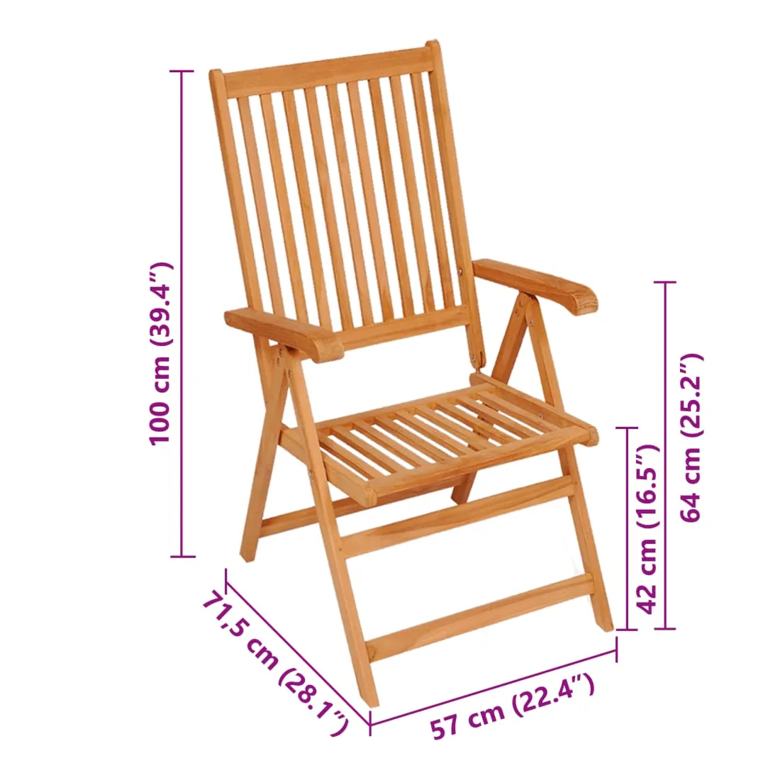Cet ensemble de chaises de jardin en bois est un excellent supplément à votre jardin ou patio. Il est idéal pour vous détendre, discuter avec la famille et les amis ou tout simplement profiter du bon temps. Fabriquée en bois dur de teck extrêmement durable, cette pièce de meuble en teck a été chevronnée, séchée au four puis finement poncée pour lui donner un aspect très lisse. Le bois de teck est connu pour sa résistance exceptionnelle aux intempéries, ce qui le rend bien plus adapté aux meubles de jardin que tout autre type de bois. Le bois de teck est le choix idéal si vous souhaitez acheter une pièce de meubles de jardin durable. Le dossier de la chaise peut être ajusté sur 7 niveaux d'inclinaison, de sorte que vous puissiez toujours trouver la position la plus confortable. La chais