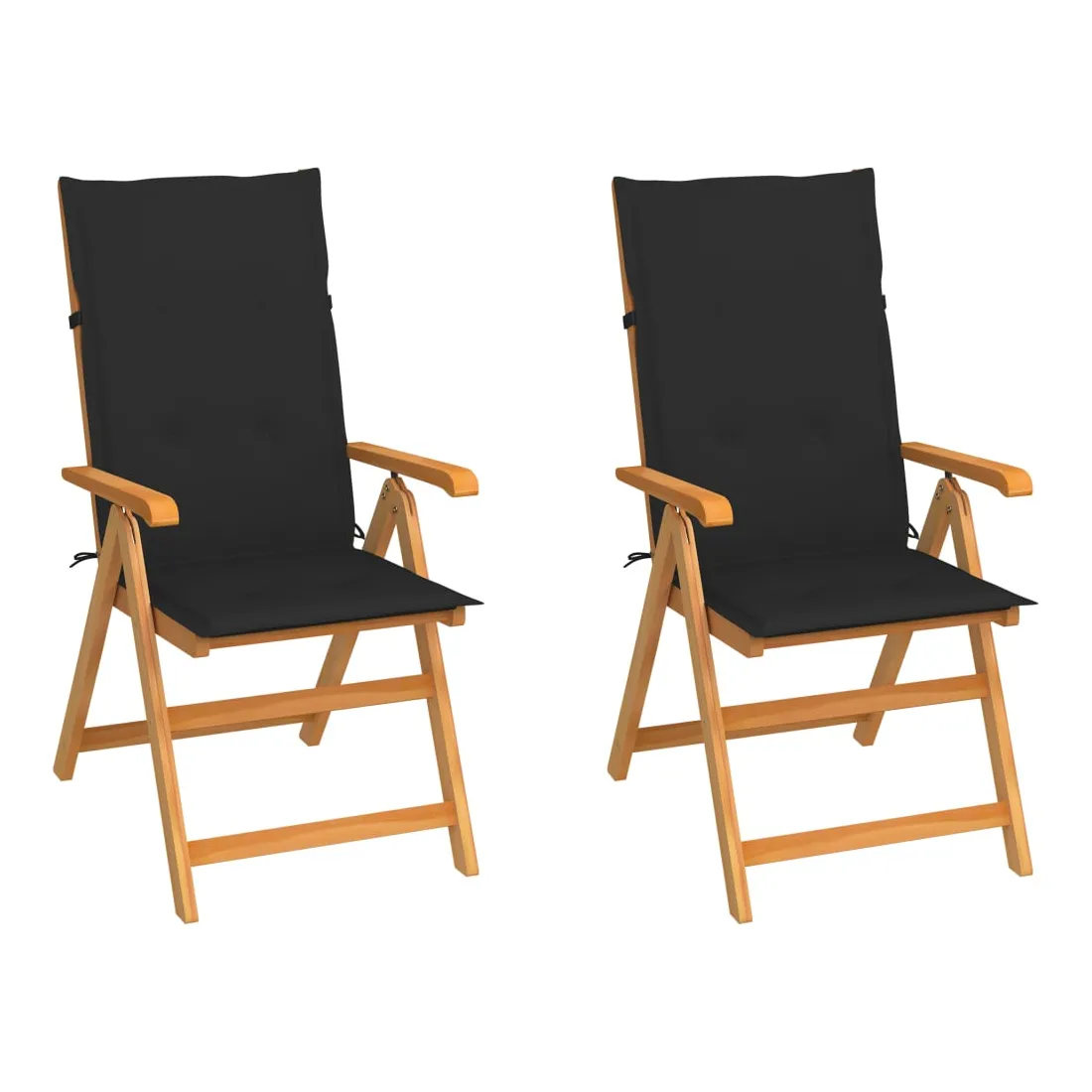 Chaises de jardin lot de 2 et coussins noir Bois de teck massif