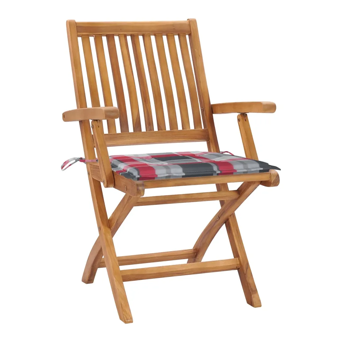 Chaises de jardin lot de 2 avec coussins à carreaux rouge Teck