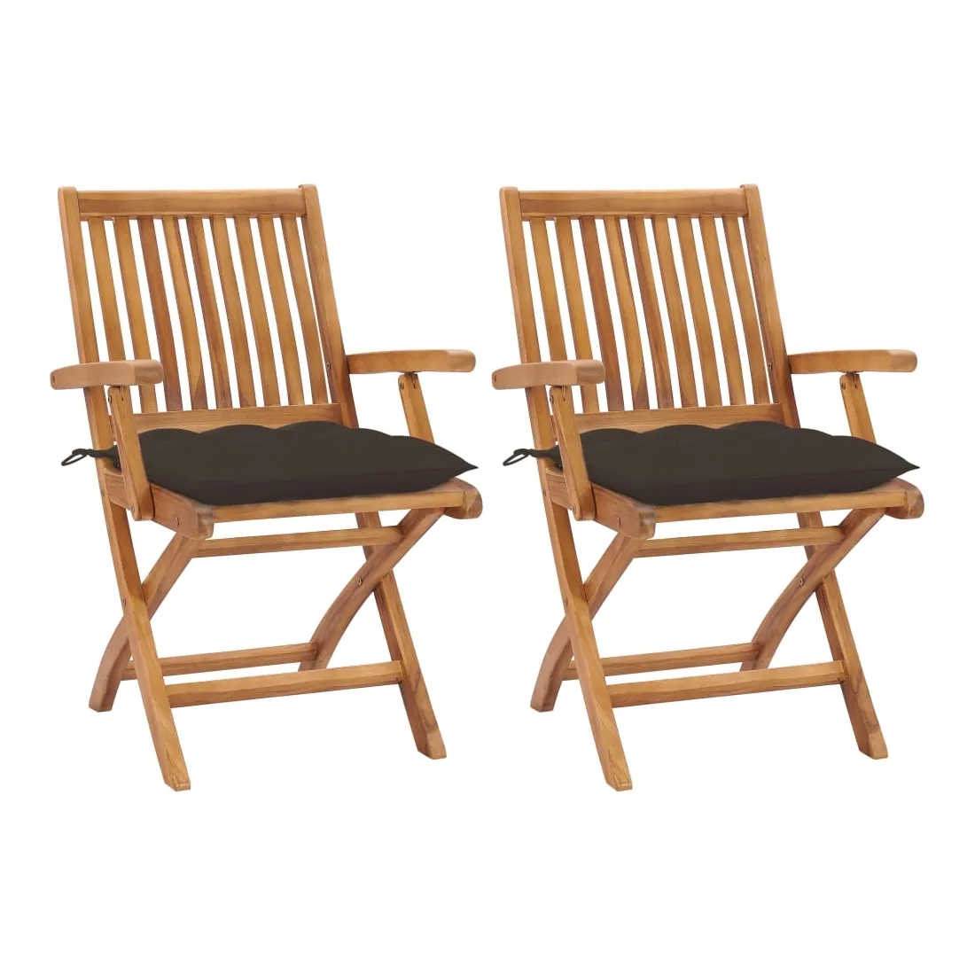 Chaises de jardin lot de 2 et coussins taupe Bois teck massif