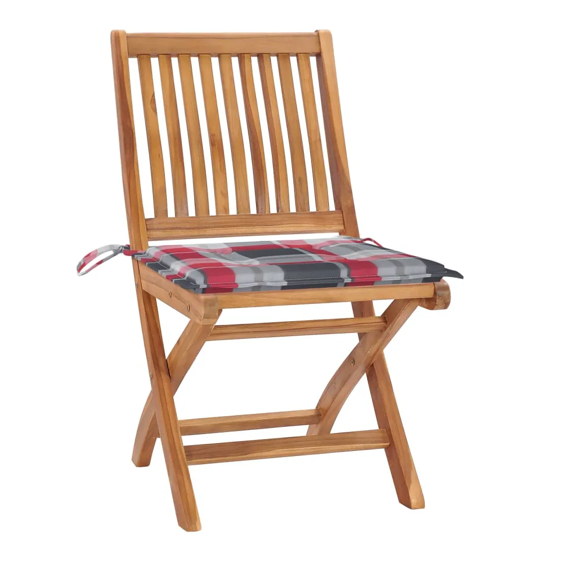 Chaises de jardin lot de 2 avec coussins à carreaux rouge Teck
