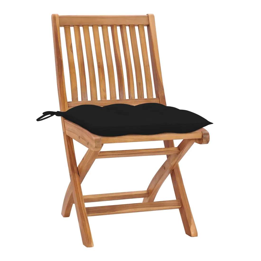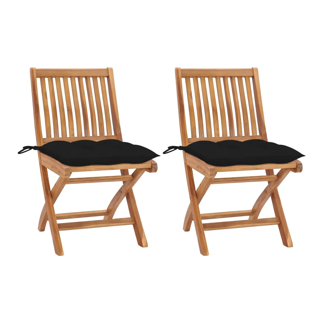 Chaises de jardin lot de 2 et coussins noir Bois de teck massif