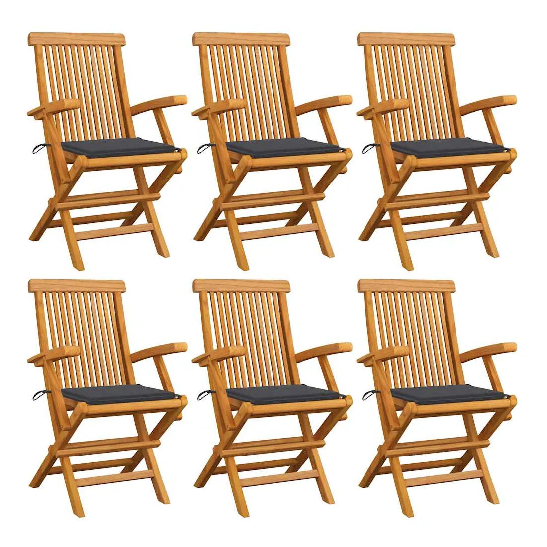 Chaises de jardin avec coussins anthracite lot de 6 Bois teck