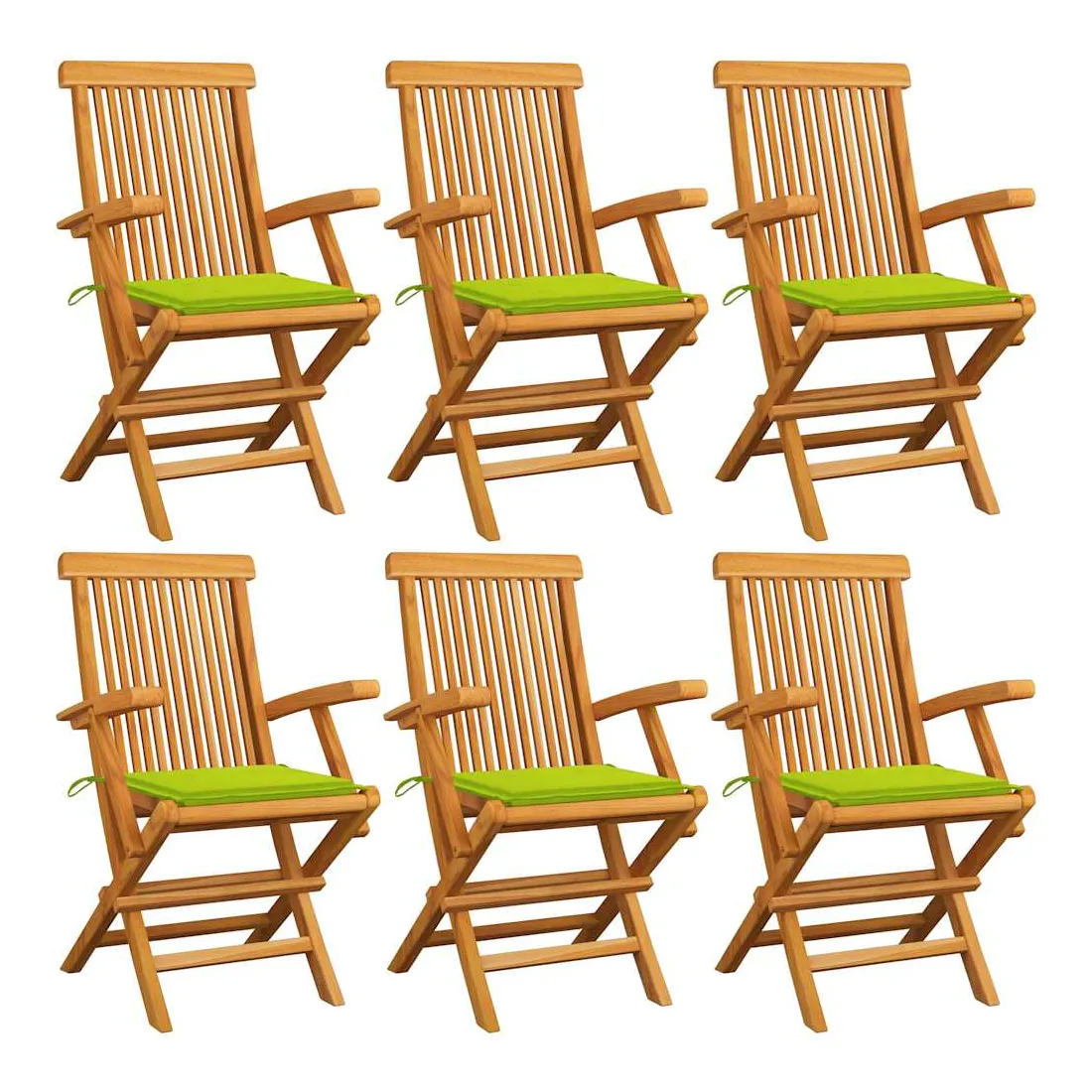Cet ensemble de chaises de jardin en bois se compose de 6 pièces et est destiné à être un excellent supplément à votre jardin, terrasse ou patio. Vous pouvez vous détendre et discuter avec la famille et les amis ou profiter du bon temps. Fabriquée en bois dur de teck extrêmement durable, cette pièce de meuble en teck a été chevronnée, séchée au four puis finement poncée pour lui donner un aspect très lisse. Le bois de teck est connu pour sa résistance exceptionnelle aux intempéries, ce qui le rend bien plus adapté aux meubles de jardin que tout autre type de bois. Le bois de teck est le choix idéal si vous souhaitez acheter une pièce de meubles de jardin durable. La surface poncée est facile à nettoyer avec un chiffon humide. Ces chaises d'extérieur sont également légères, ce qui les rend complètement flexibles et faciles à déplacer. Les chaises en bois peuvent être pliées pour gagner de la place lorsqu'elles ne sont pas utilisées. De plus, les coussins de siège inclus offrent également un confort d'assise supplémentaire.