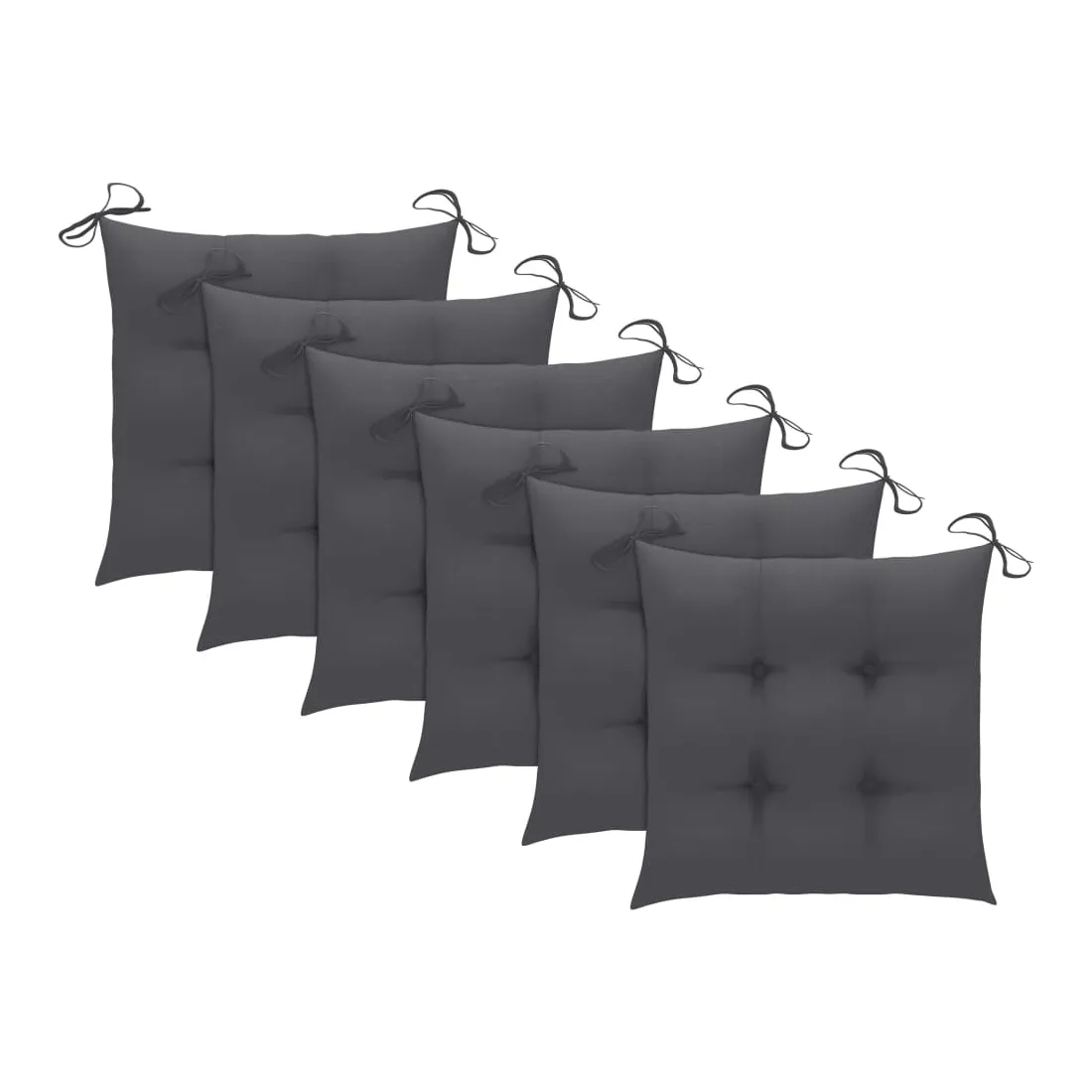 Cet ensemble de chaises de jardin en bois se compose de 6 pièces et est destiné à être un excellent supplément à votre jardin, terrasse ou patio. Vous pouvez vous détendre et discuter avec la famille et les amis ou profiter du bon temps. Fabriquée en bois dur de teck extrêmement durable, cette pièce de meuble en teck a été chevronnée, séchée au four puis finement poncée pour lui donner un aspect très lisse. Le bois de teck est connu pour sa résistance exceptionnelle aux intempéries, ce qui le rend bien plus adapté aux meubles de jardin que tout autre type de bois. Le bois de teck est le choix idéal si vous souhaitez acheter une pièce de meubles de jardin durable. La surface poncée est facile à nettoyer avec un chiffon humide. Ces chaises d'extérieur sont également légères, ce qui les rend complètement flexibles et faciles à déplacer. Les chaises en bois peuvent être pliées pour gagner de la place lorsqu'elles ne sont pas utilisées. De plus, les coussins de siège inclus bien rembourrés offrent également un confort d'assise supplémentaire.