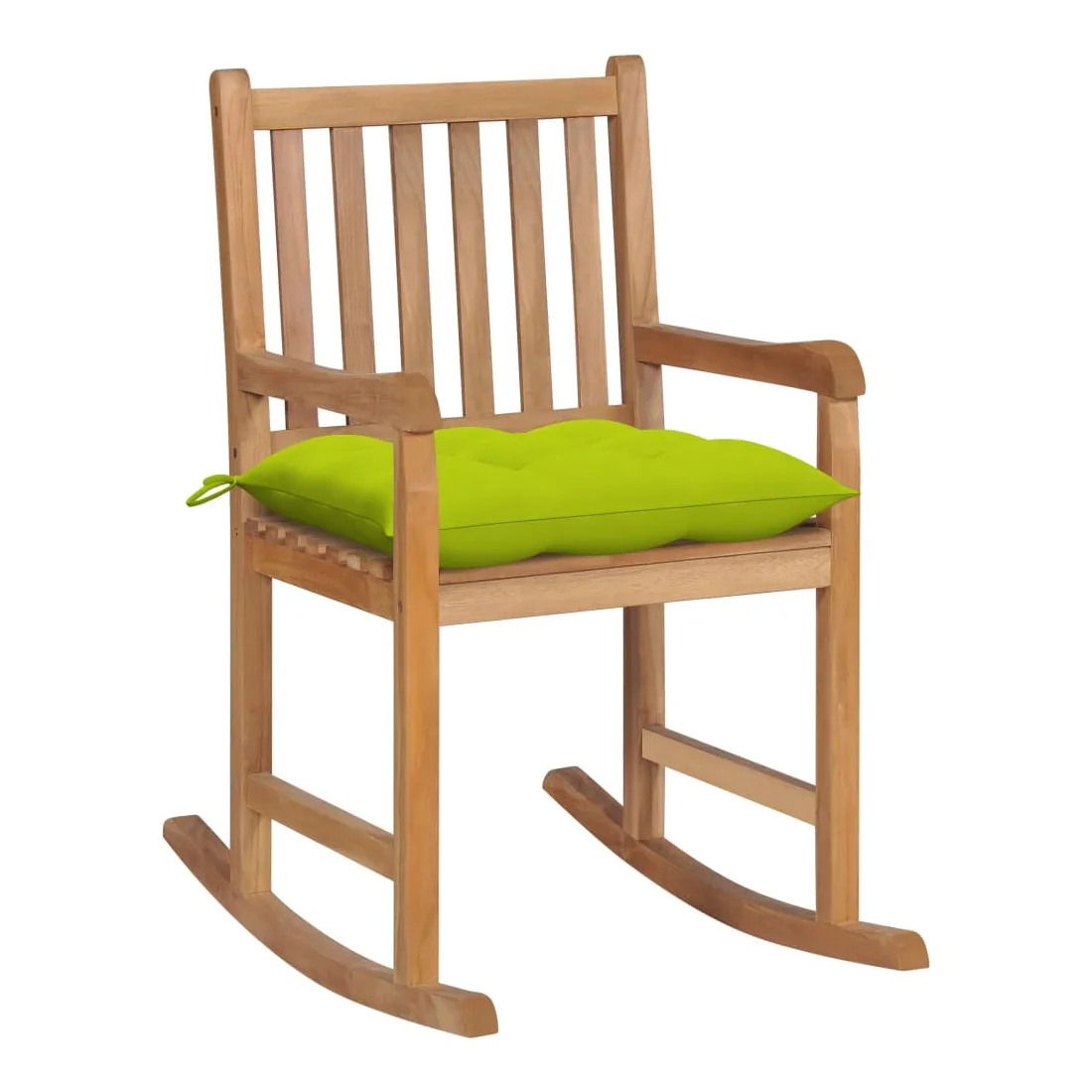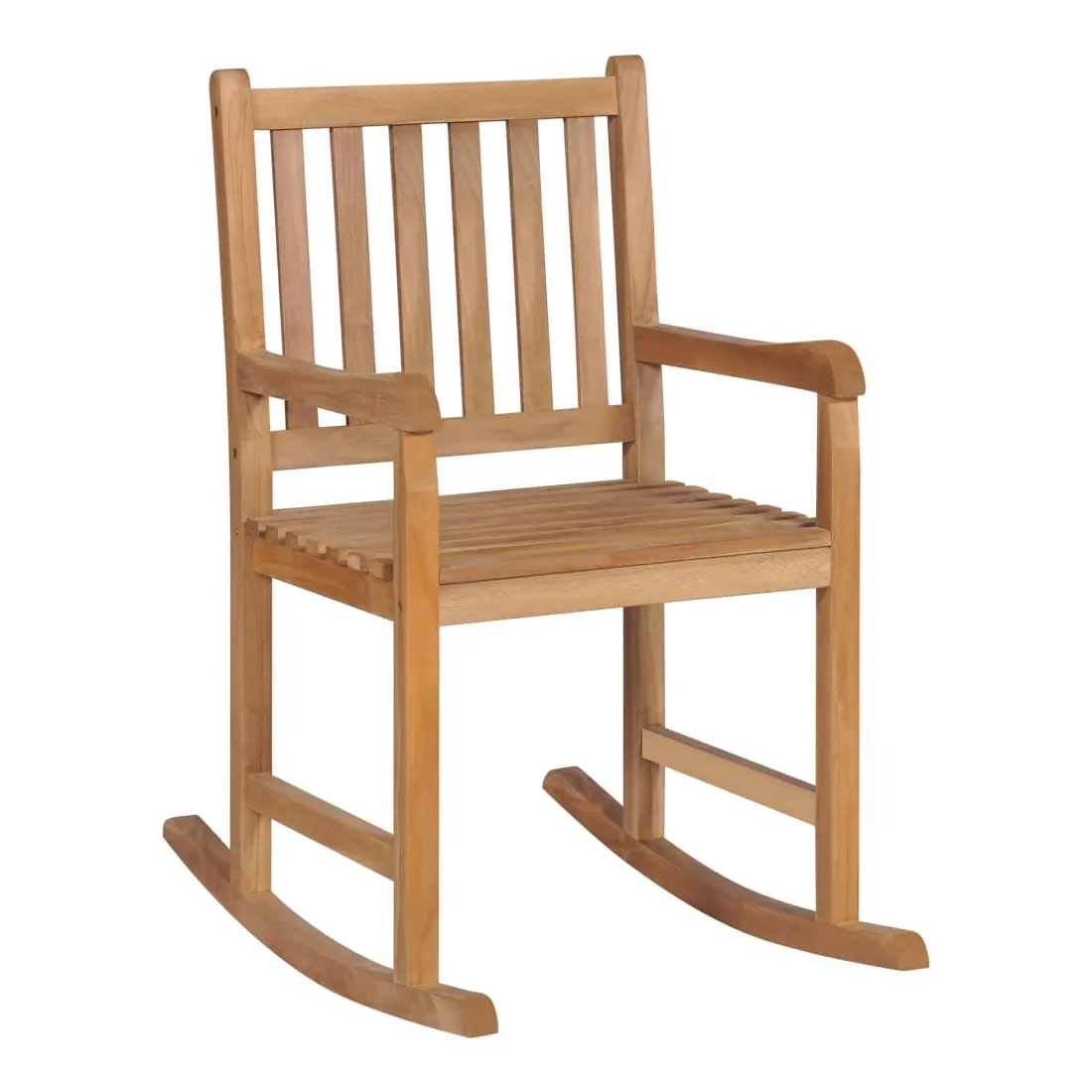 Cette chaise à bascule en bois sera un choix parfait pour profiter de votre temps libre. Elle est idéale pour usage à l'intérieur et l'extérieur. Fabriquée en bois dur de teck extrêmement durable, cette pièce de meuble en teck a été chevronnée, séchée au four puis finement poncée pour lui donner un aspect très lisse. Le bois de teck est connu pour sa résistance exceptionnelle aux intempéries, ce qui le rend bien plus adapté aux meubles de jardin que tout autre type de bois. Le bois de teck est le choix idéal si vous souhaitez acheter un meuble de jardin durable. Le dossier et l'assise à lattes peuvent offrir un excellent soutien. C'est le meilleur siège pour discuter, lire, regarder la télévision ou simplement vous détendre ! Le coussin inclus est pratique et a une fonction décorative.