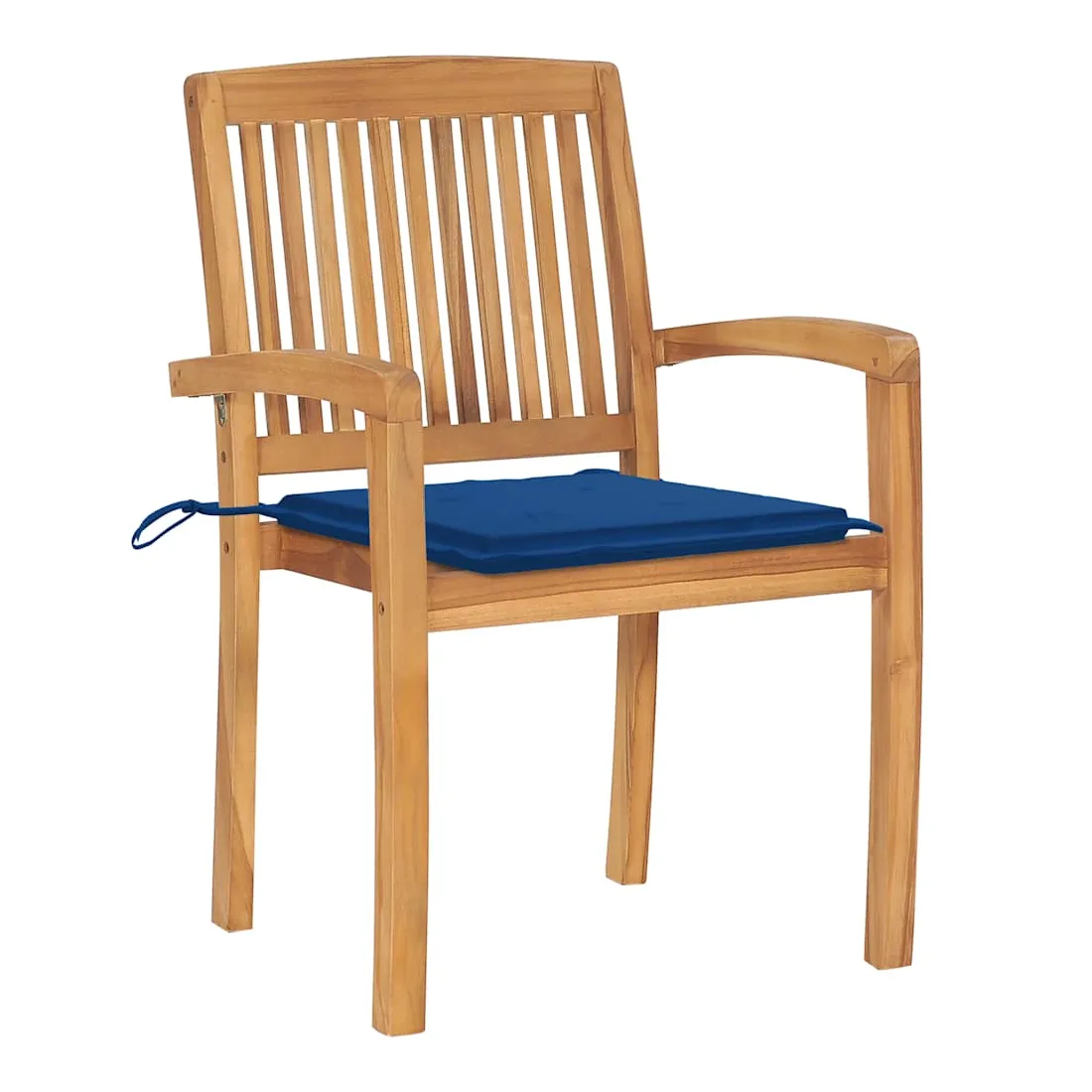 Chaises de jardin lot de 2 avec coussins bleu royal Teck massif