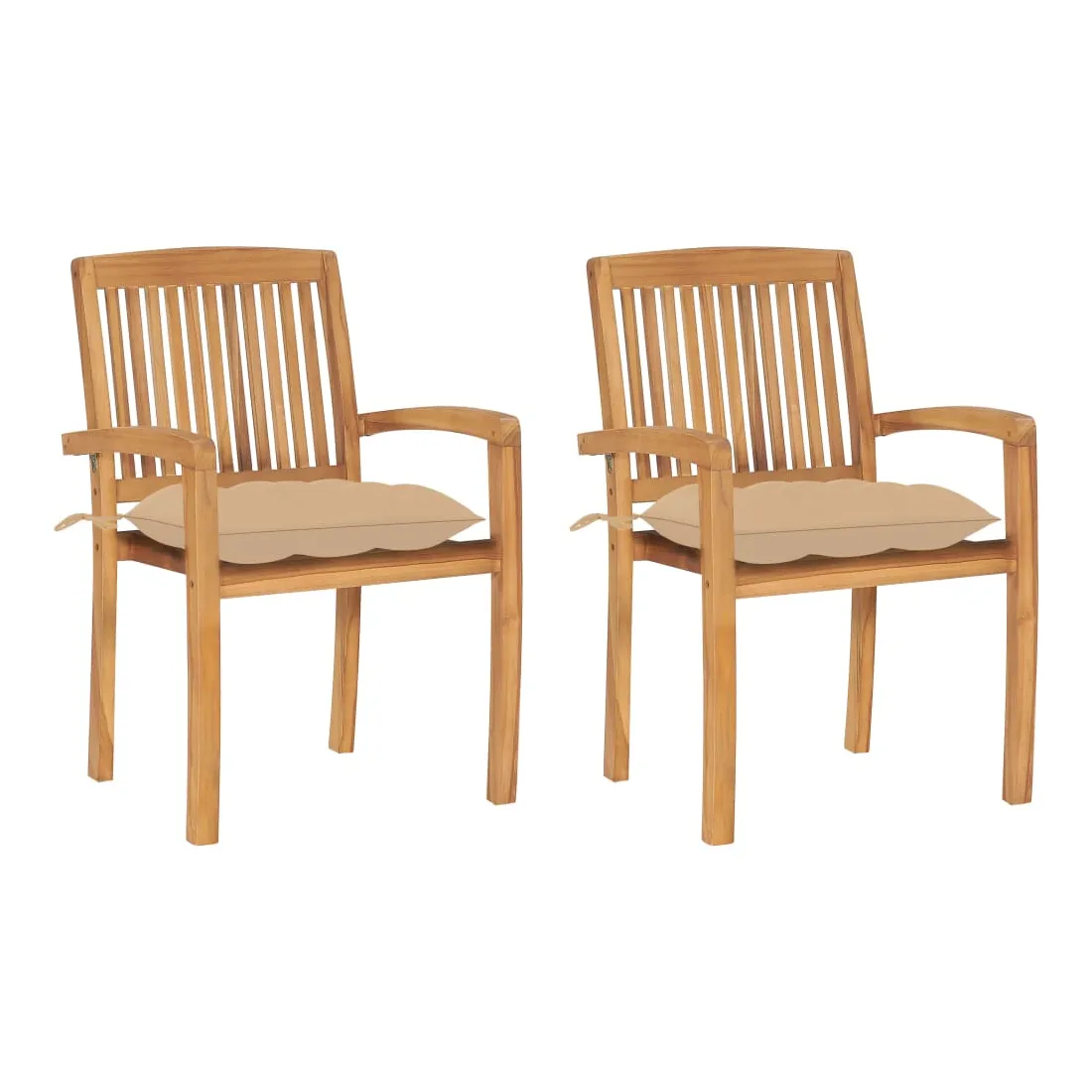 Chaises de jardin lot de 2 et coussins beige Bois teck massif
