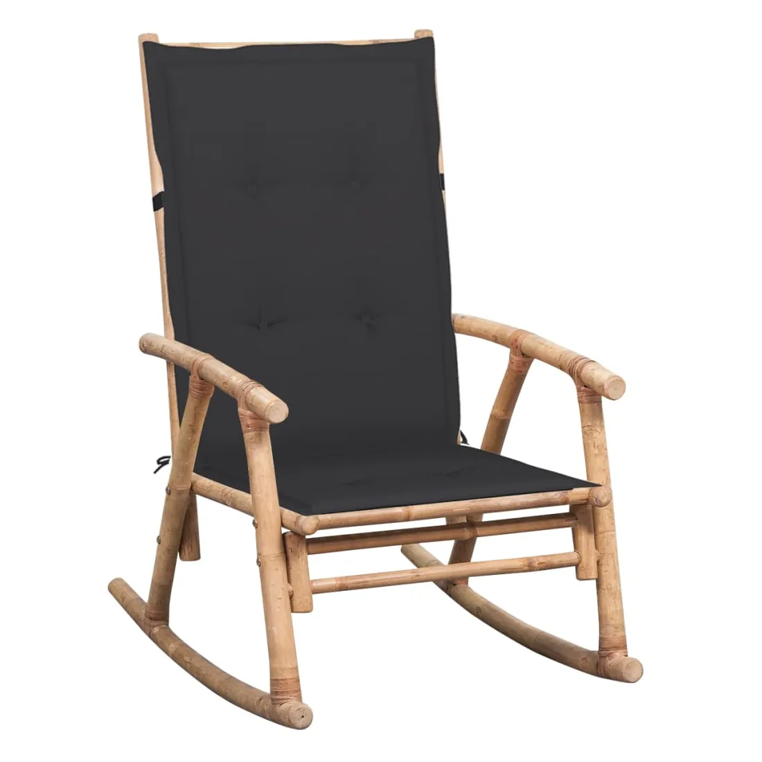 Cette chaise à bascule en bambou est un excellent choix pour vous détendre dans votre jardin ou sur votre véranda. Fabriquée en bambou massif, cette chaise de patio est facile à nettoyer, solide et durable. Résistant aux UV et aux intempéries, le fauteuil en bambou peut être utilisé à l’intérieur comme à l’extérieur. La chaise à bascule sera un excellent supplément à tout espace de vie. De plus, le coussin inclus offre du confort supplémentaire pour vous prélasser. Il est fait de 100 % polyester qui a été traité pour le rendre imperméable. Chaque coussin a une bande élastique et deux ensembles de cordes pour le fixer fermement sur la chaise. Stockage : si possible, stockez dans un endroit frais et sec à l'intérieur. Si le produit est stocké à l'extérieur, protégez-le avec une housse im