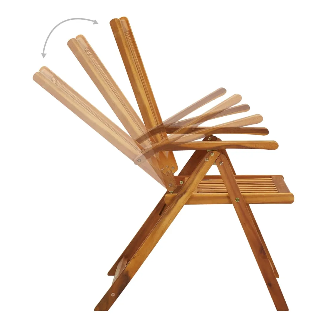 Cet ensemble de chaises de jardin en bois avec coussins est conçu pour ajouter un look vintage à tout dîner dans votre jardin, sur votre terrasse ou patio. La chaise pliable est en bois d'acacia massif, un bois dur tropical, ce qui la rend stable et durable. La surface à finition à huile est facile à nettoyer avec un chiffon humide. La chaise de salle à manger peut être ajustée en 5 positions, vous offrant un confort d'assise optimal. Elle peut également être pliée pour économiser de l'espace lorsqu'elle n'est pas utilisée. De plus, les coussins fournis offrent un confort supplémentaire lors de la détente ou du dîner. Chaque coussin comporte deux jeux de cordes des deux côtés et une sangle élastique derrière le dossier pour le fixer fermement à la chaise. La livraison comprend le matériel jaune galvanisé.