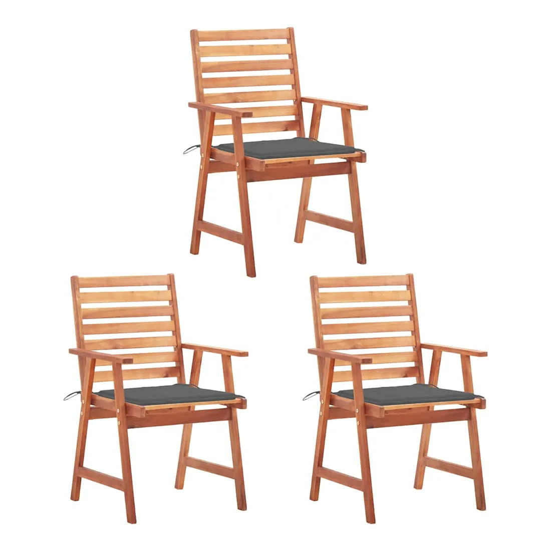 Chaises à manger d'extérieur lot de 3 et coussins Acacia massif