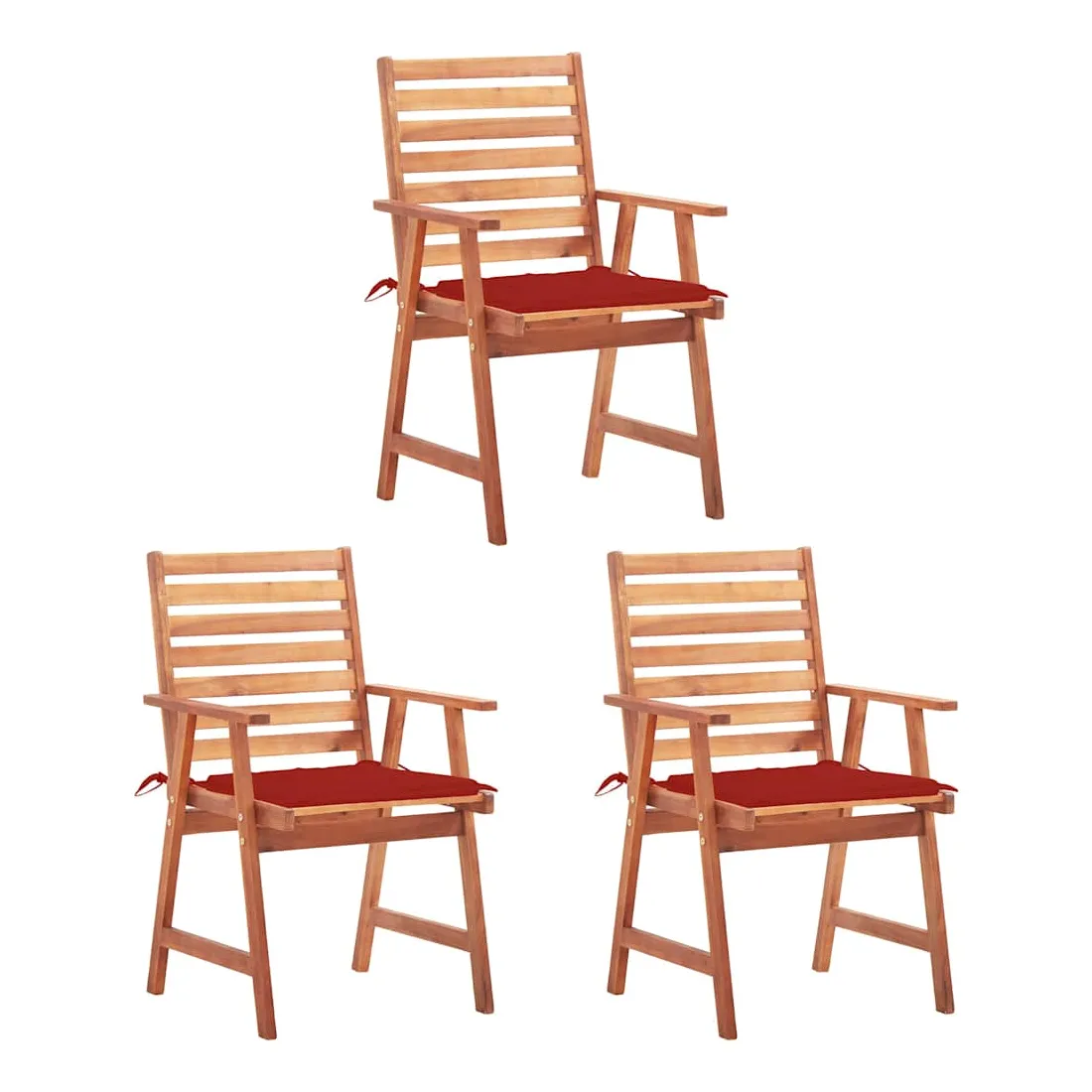 Chaises à manger d'extérieur lot de 3 et coussins Acacia massif