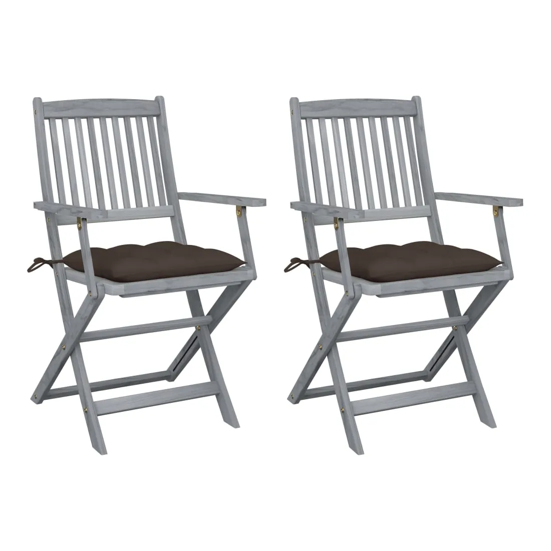 Chaises pliables d'extérieur lot de 2 et coussins Bois d'acacia