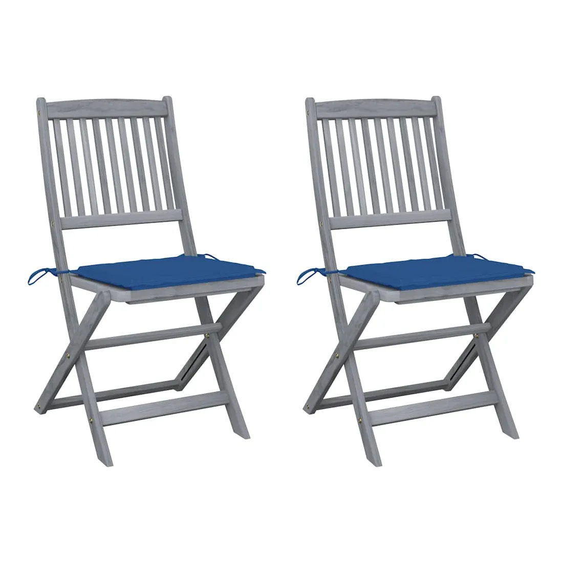 Chaises pliables d'extérieur lot de 2 et coussins Bois d'acacia