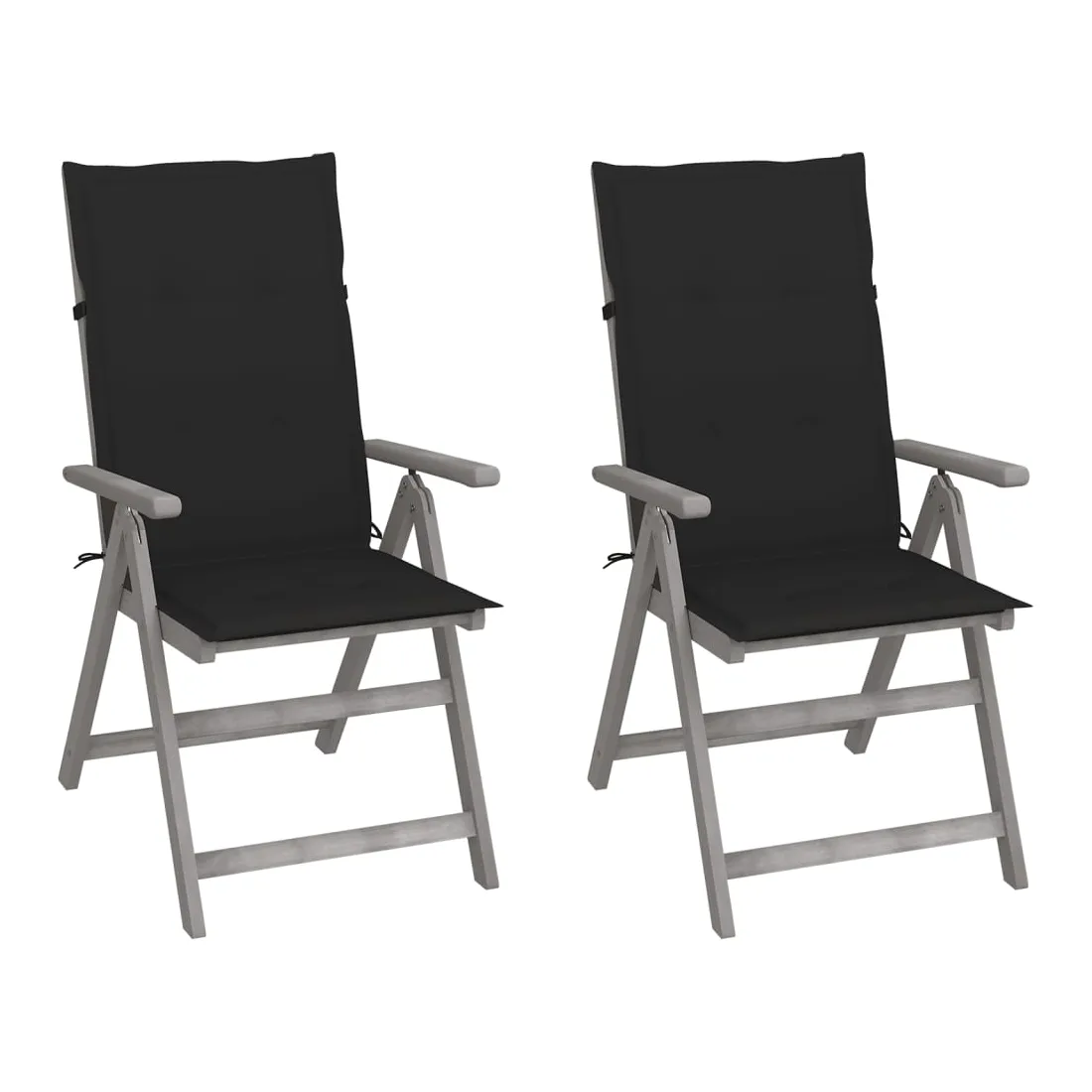 Chaises inclinables de jardin lot de 2 et coussins Bois acacia